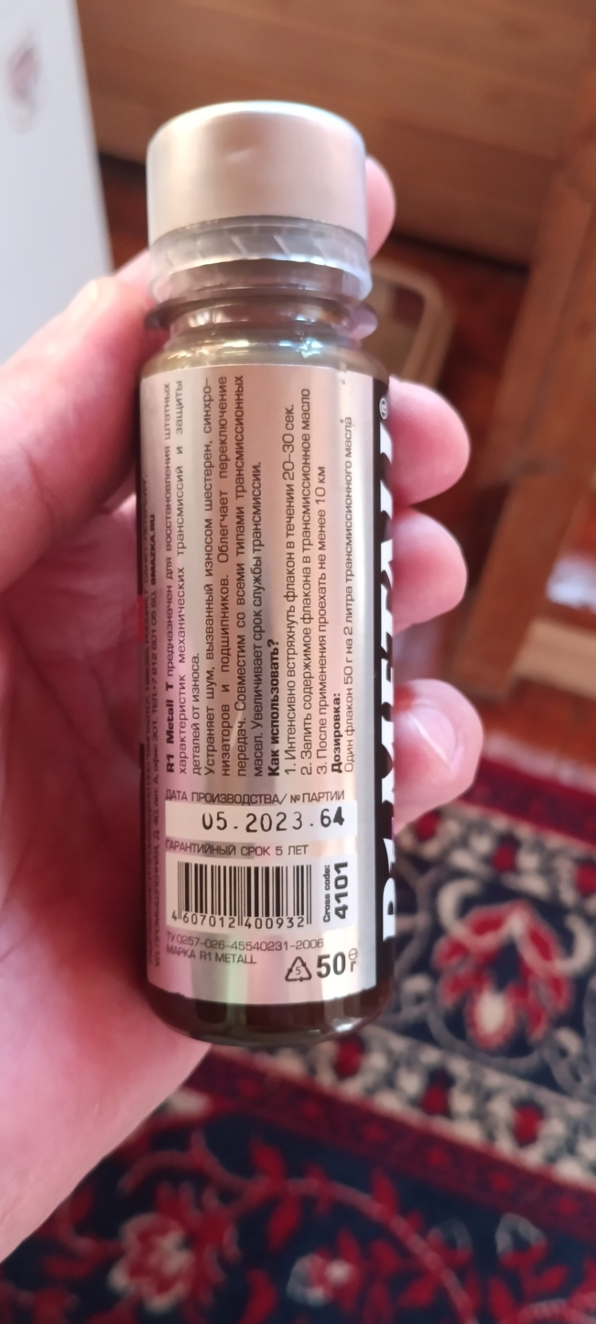 Первое, это Уазовское трансмиссионное масло, второе — это присадка от ВМПАВТО R1Metall T для механических трансмиссий.