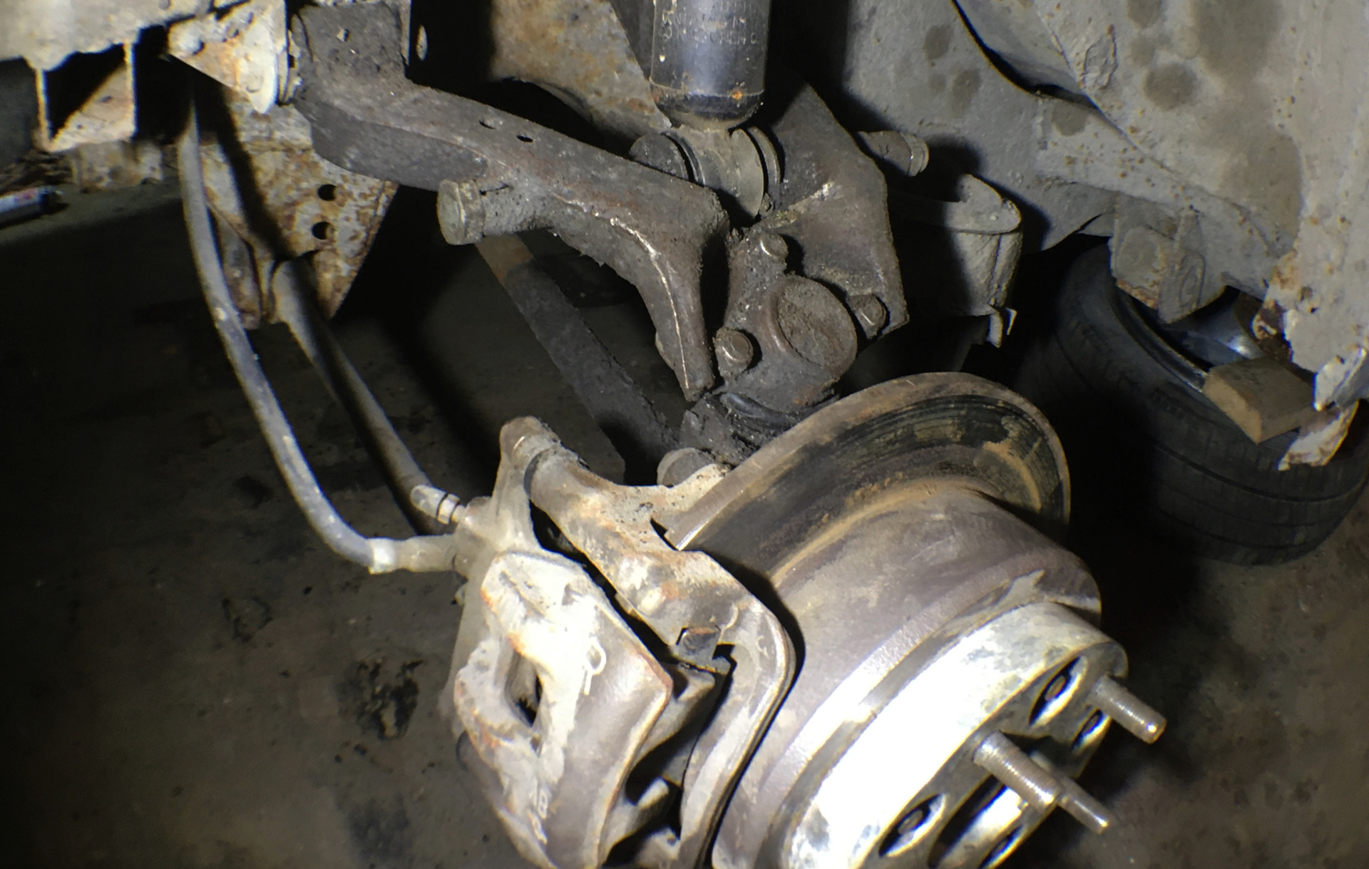 Лааадно, пока всем этим любовался — промелькнула мысль, что машина уже без малого 6 месяцев стоит совсем без движения, простояла зиму + влажность в гараже, возможно просто "прилипли" тормоза, беру отвертку помощнее, в распор суппорта и тормозного диска — и "чпеньк", со звуком, как будто тормоза прихвачены на точку сварки и колодки отлипают и начинается тяжелое, но вращение. Иду делаю "чпеньк" со второй стороны и все начинает шевелиться.