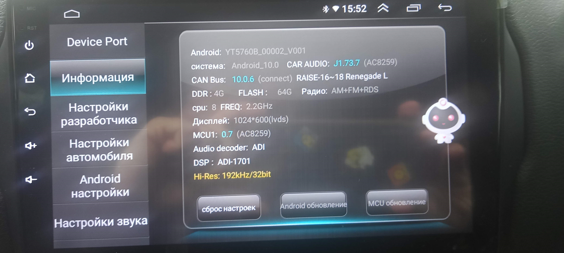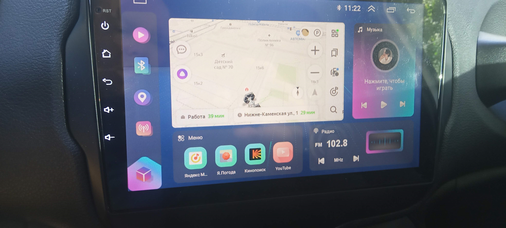 из плюсов магнитолы: большой экран, сим-карта с 4ж, все что связано с инетом играет отлично. а так как это андроид, куча программ в наличии на гугл плей. по кан шине увидела все датчики и кнопки. только одна кнопка не отрабатывает (подрулевая mute), обучить ее тоже пока не получилось. все остальное видит.