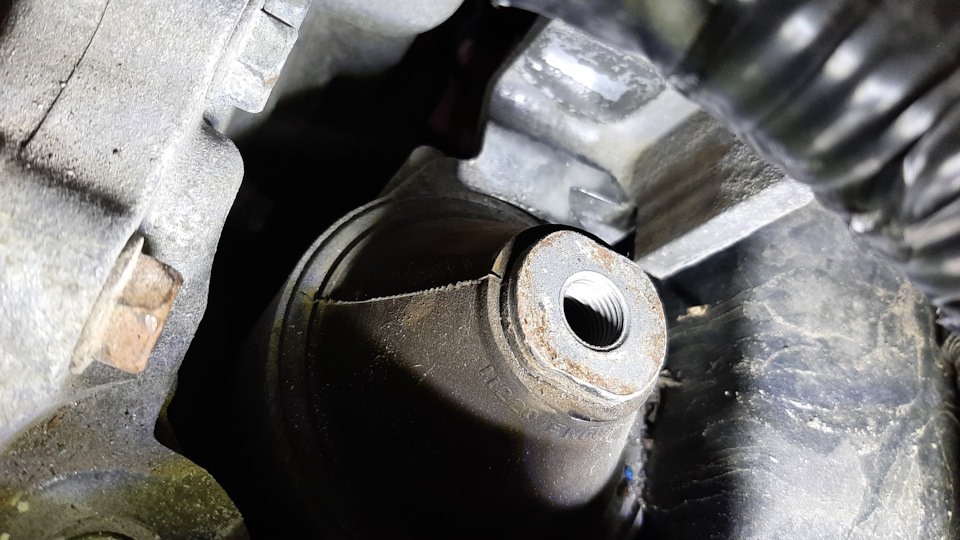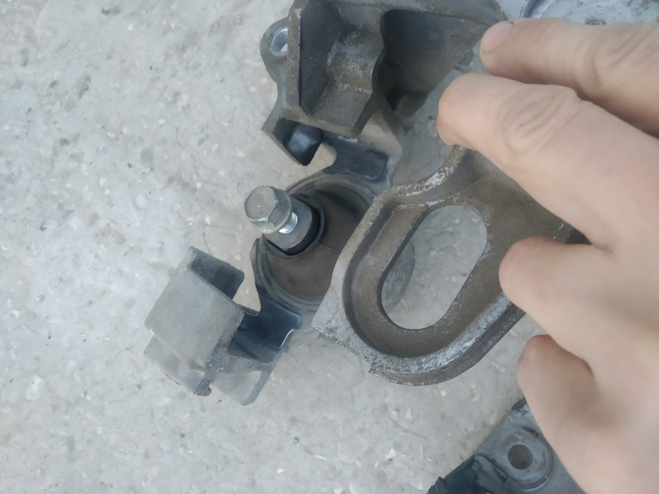 Ключом на 21 откручиваем 2 болта крепящих опору к коробке