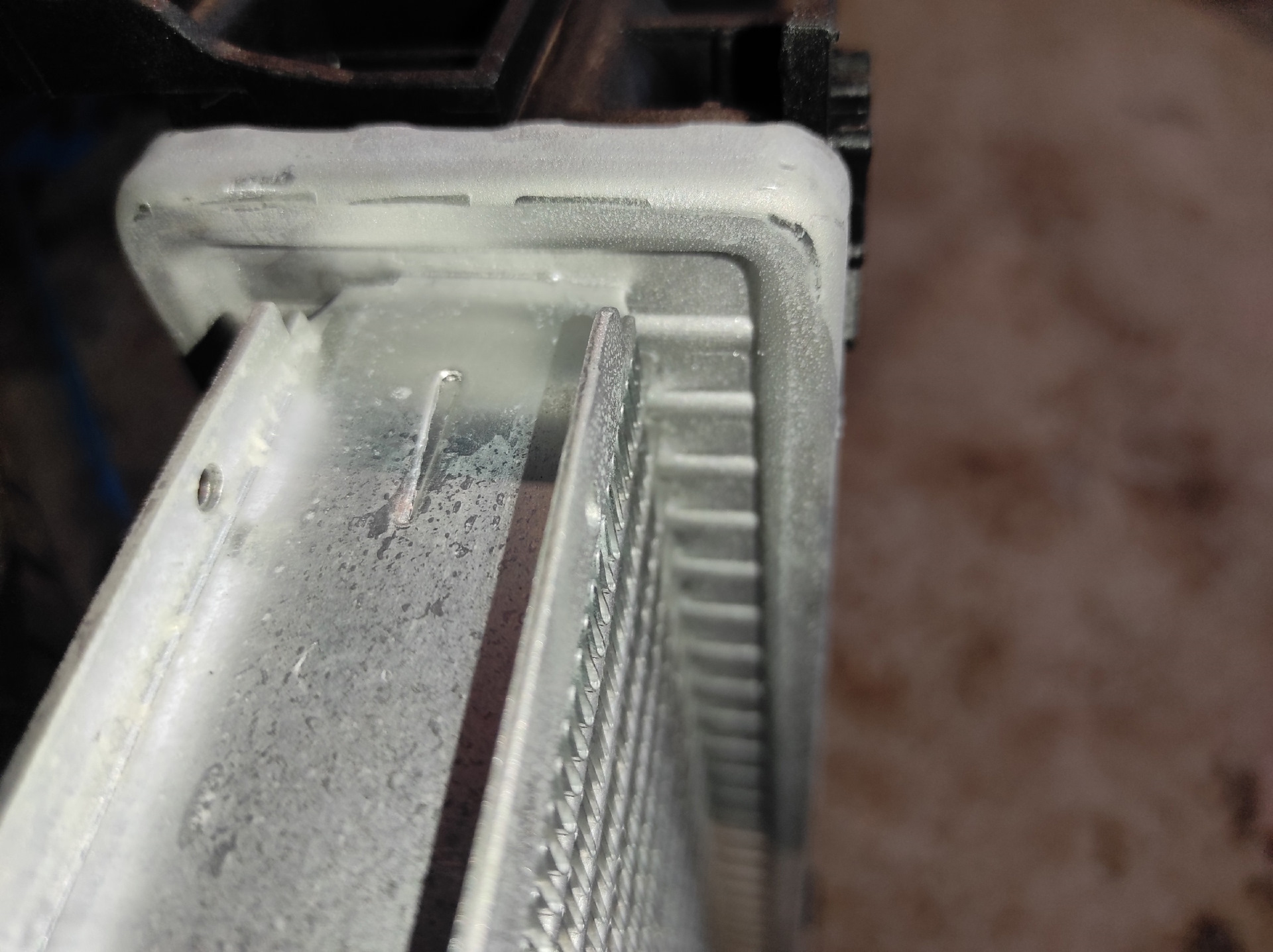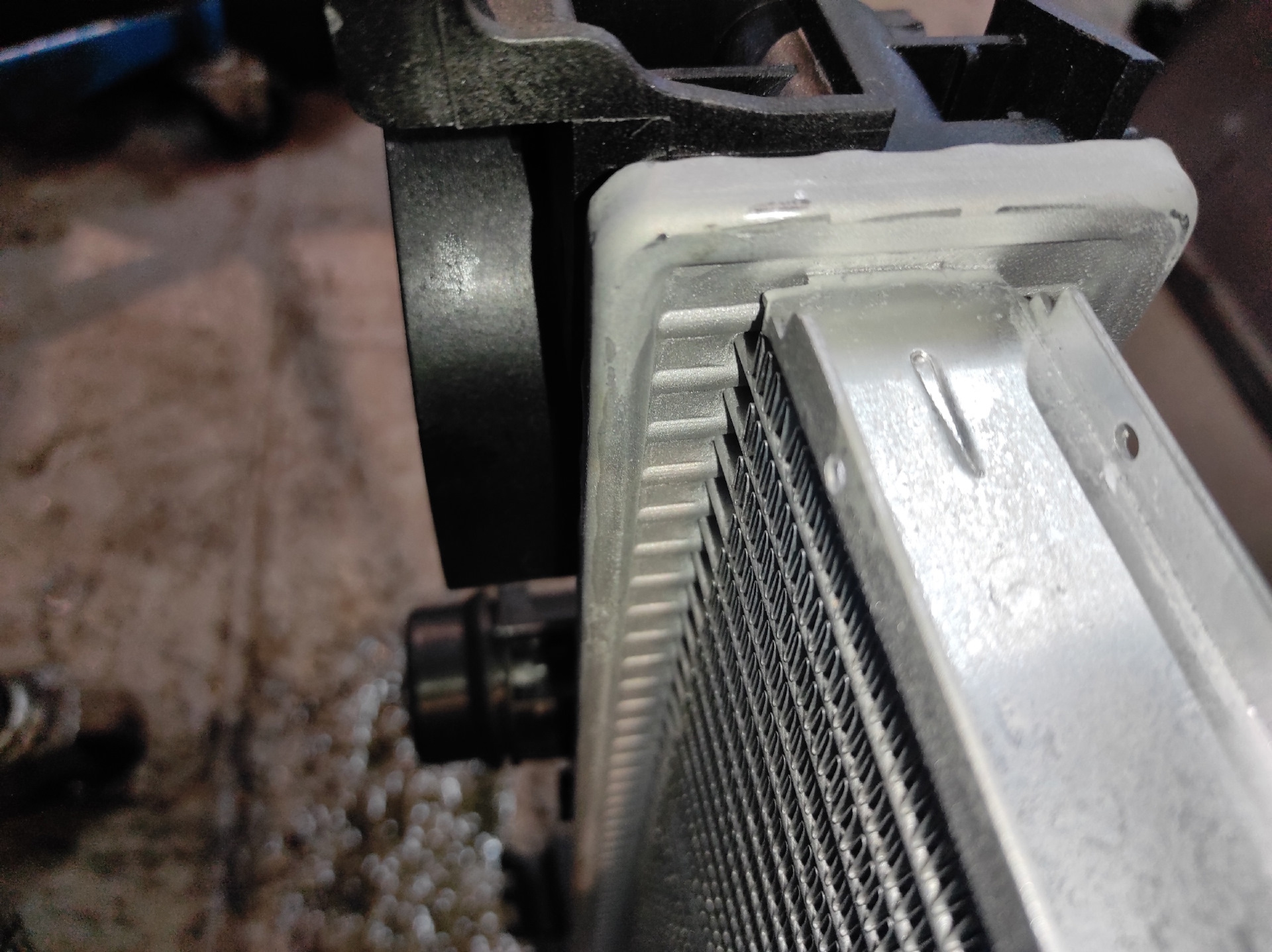 1: Отсутствие закладных под болты от радиатора кондиционера, для их жёсткого соединения. Закладные изготовили самостоятельно.