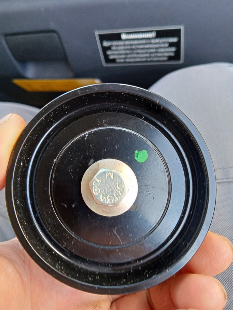 Сначала про ролик. Экзист как всегда обул с сроками. Ремень до сих пор не пришёл, зато ролик пришёл. Land Rover PQR101150. Старый совсем развалился, поэтому замена подшипника не помогла бы. Итак закрутить совсем легко, а вот натянуть ремень обратно пришлось попотеть и воспользоваться ключем и куском уже полюбившейся трубы. Запуск, все ок. Закручиваем обратно вискомуфту, стопорим куском арматуры и вуаля, все готово.