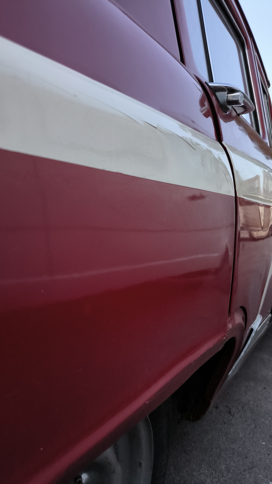 Неуспев нарадоватся, невнимательно выежая с гаража, я зацепил автобус и помял дверь и крыло… В тот день что-то всё к этому шло, то круг от болгарки разлетится и палец поранит, то искра в глаз через очки попала, и вот это… Обидно конечно, но всё исправимо, ищем толкового рихтовщика и покрасчика.