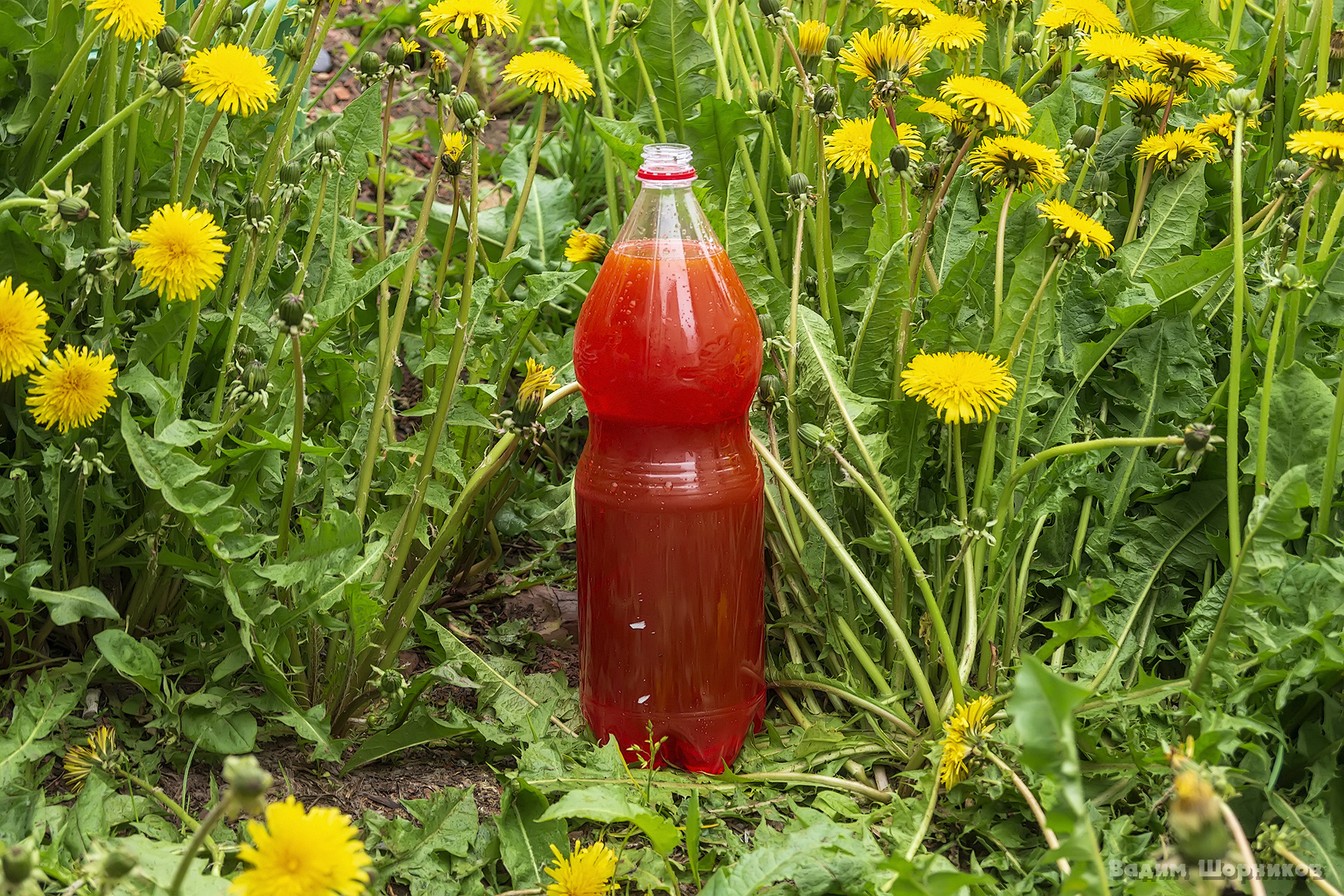 Чтоб посмотреть на состояние антифриза, налил его в ПЭТ бутылку. На вид свежий, не грязный, заливал его в прошлом году, он бы ещё поработал. Выливать его не буду, пусть стоит, мало что, может пригодится для моего шевика на доливку. В шевике точно такой же антифриз залит.