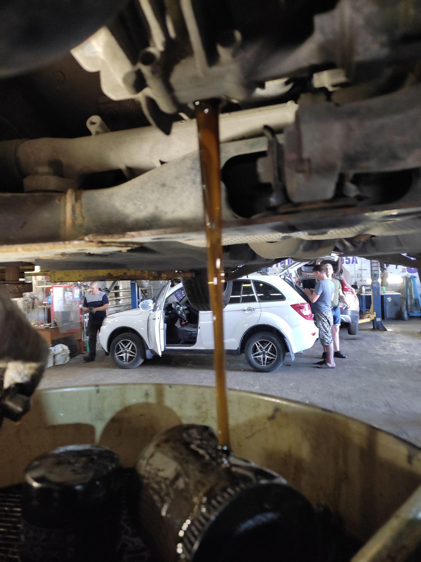 ВНИМАНИЕ! Если делаете замену на подъемнике, обратите внимание, что б авто ровно висело. Я когда поднял, левая сторона была ниже правой, пришлось с одной стороны снять стопор и приопустить. Может быть кстати поэтому у некоторых 1 литра и не хватало из-за наклона авто, у меня хватило, грамм 50 ещё даже с литра осталось.