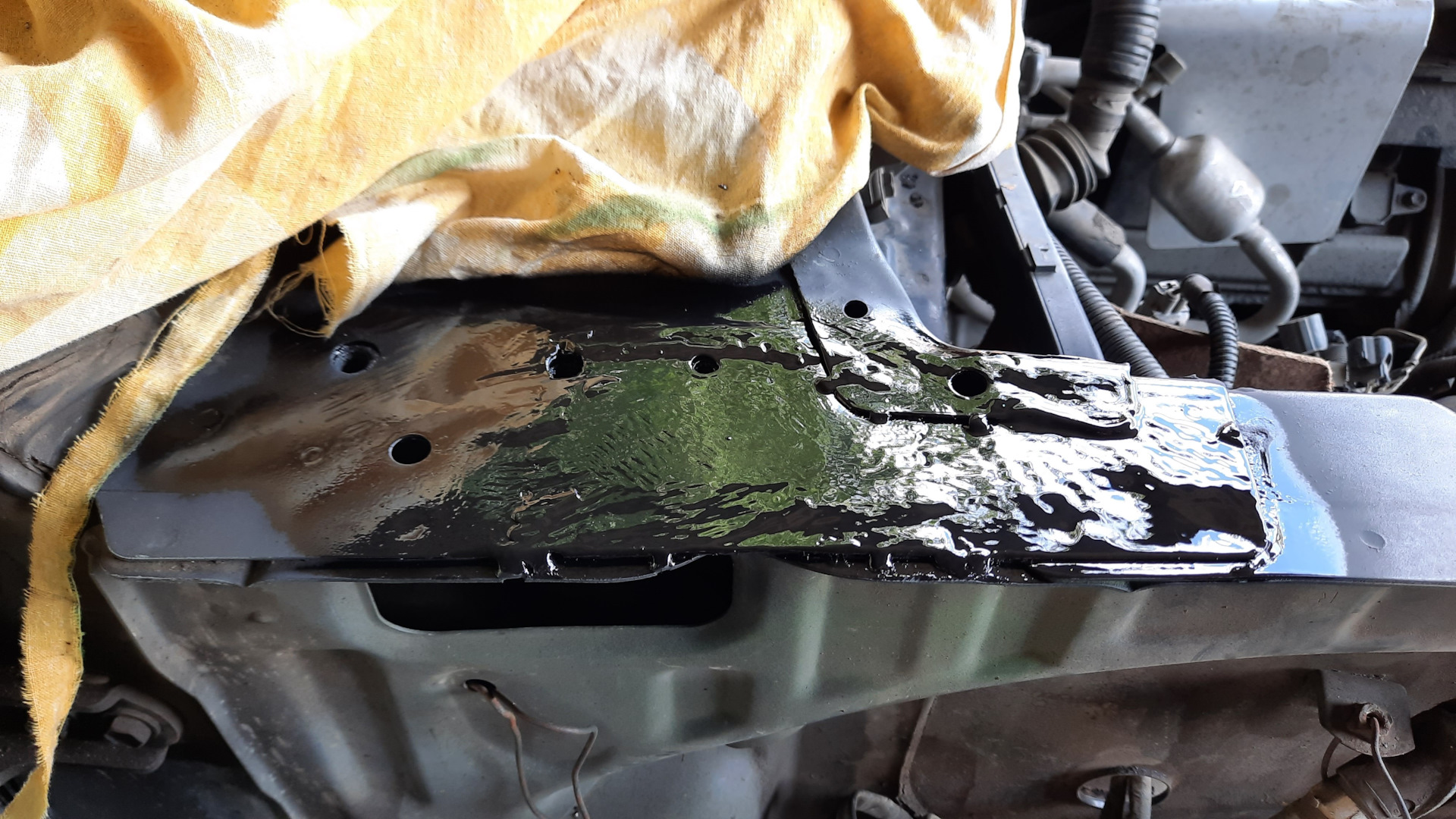 Первоначальный план включал в себя ремонт нижнего загиба правого переднего крыла, переднего угла правого порога, заднего угла правого порога и примыкающей к нему части задней арки. Сняв крыло (и сломав три болта М6), я увидел, что придется делать угол под петлей капота и угол брызговика от воздушного фильтра до щита передка.