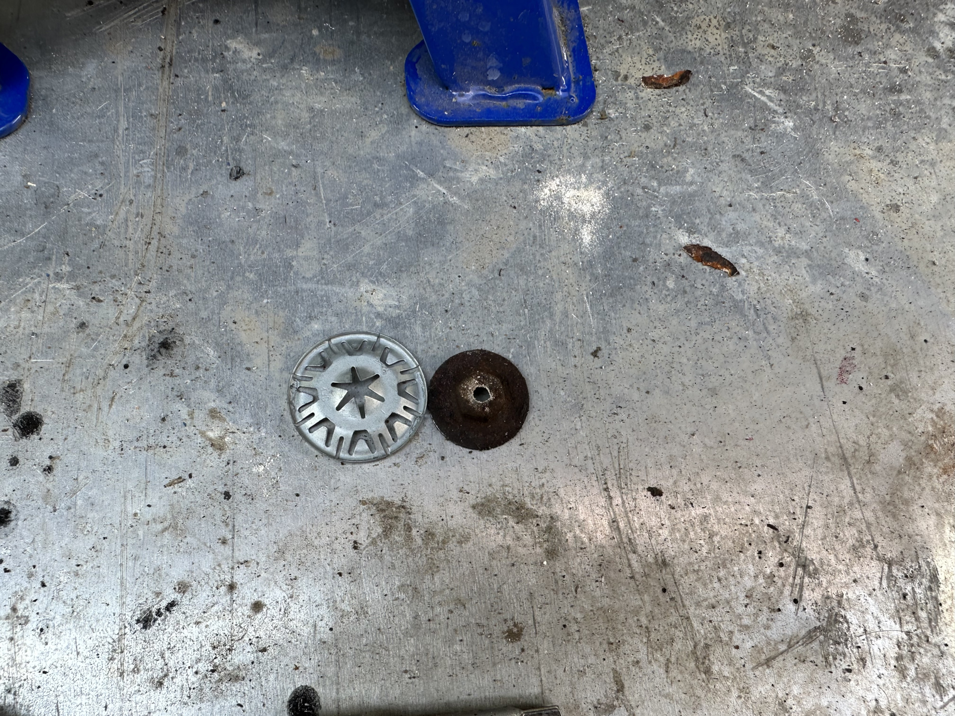 И вот вроде бы всё, но в процессе снятия понял что теплозащитный экран хорошо так погрызли бобры. При чём не только вокруг бака, но и тот что идёт под центральным тоннелем. Он дребезжал ещё зимой, так что к этому я был готов. Решение этой проблемы я уже использовал для ремонта теплового экрана над глушителем. Это более широкие шайбы от VAG N90796502. Они позволяют закрепить тепловые экраны на какое-то время. Ну а когда и их сгрызут бобры — буду придумывать что-то другое.
