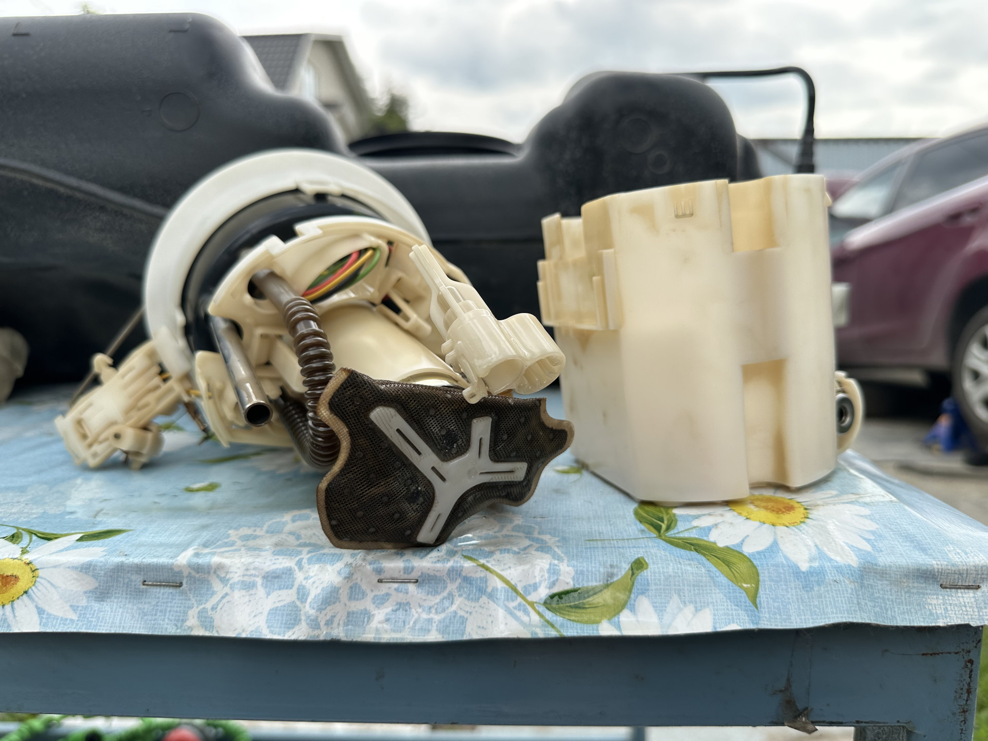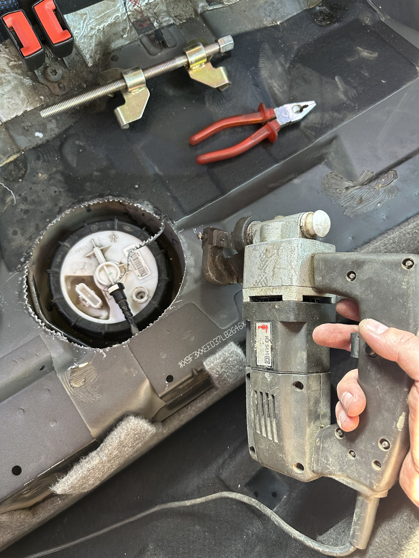 Ремонт. Настал день замены сеточки. Вандалить пол мне очень не хотелось, по-этому сняв заднее сиденье и убедившись что до меня никто не наворотил дел (я это и так знал конечно же, просто решил проверить, смогу ли отключить бензонасос через отверстие под проводку), приступил к снятию топливного бака.