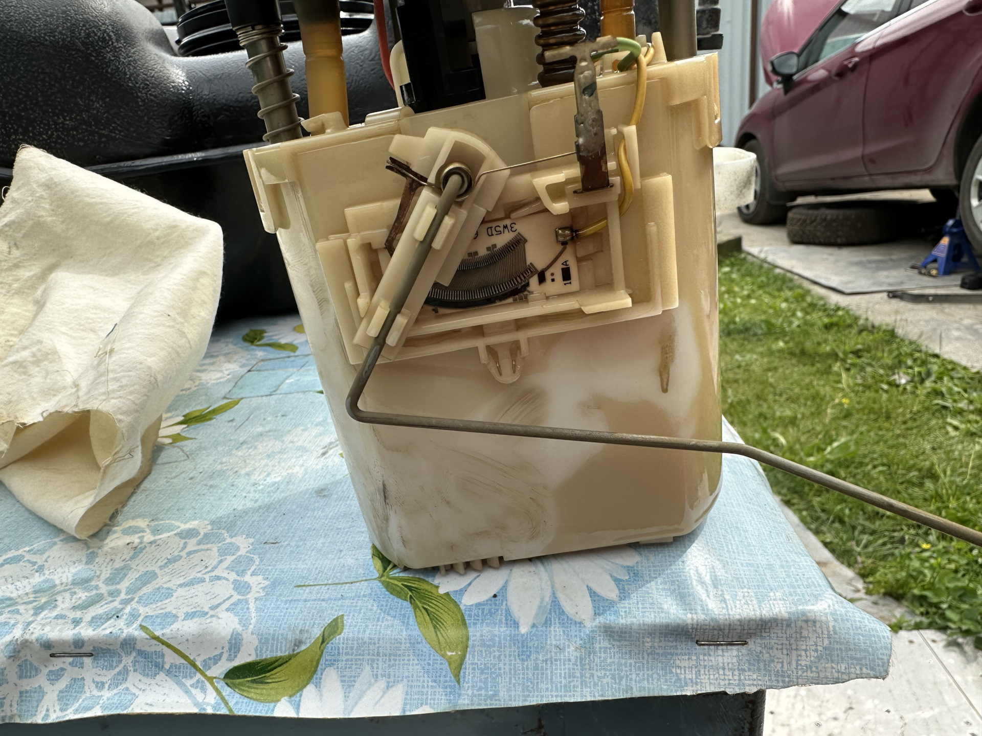Отстегнул указатель уровня топлива, снял защёлку обратки и отсоединил стакан. Заводская сетка прилично подзабилась.