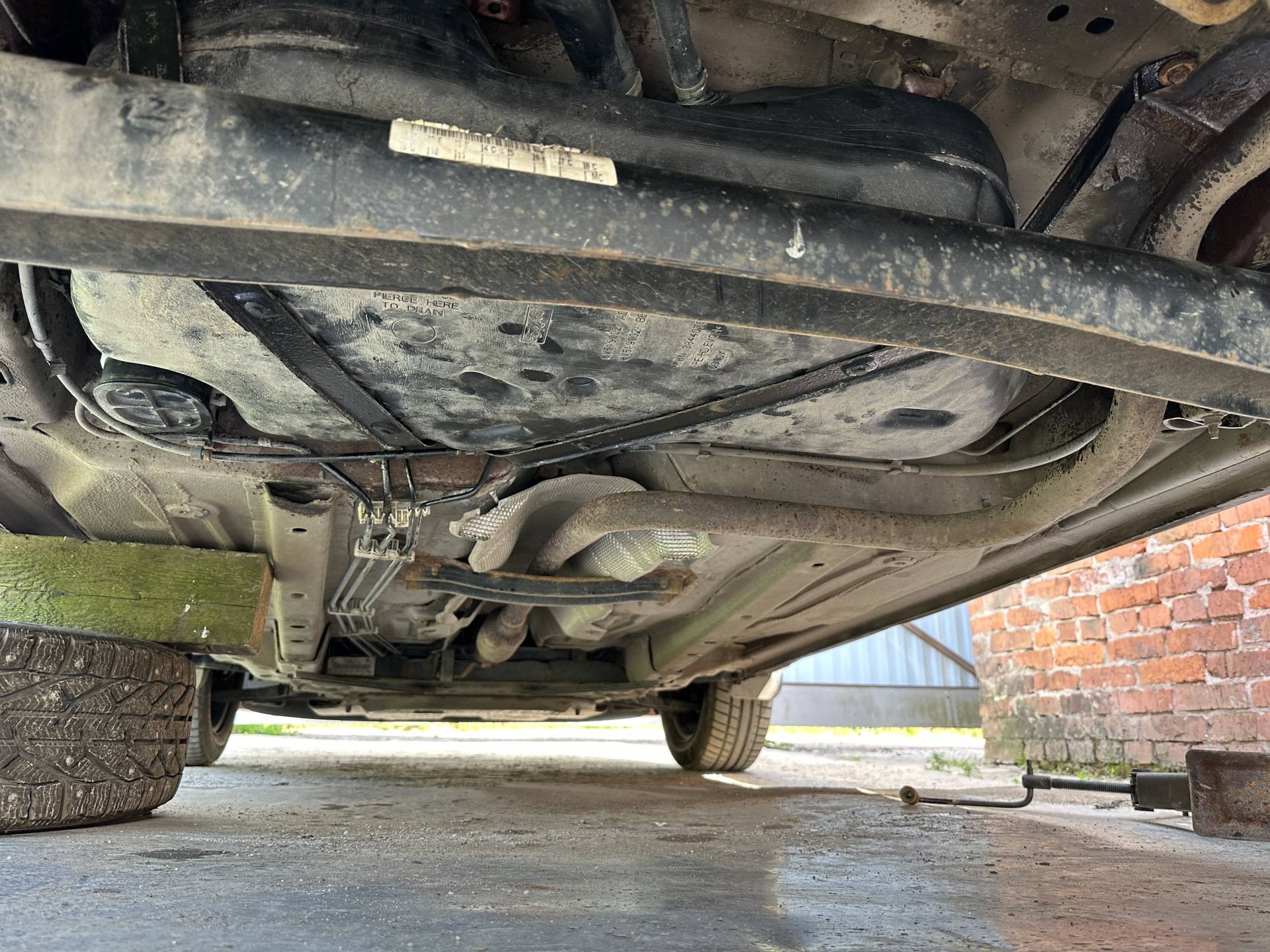лямки крепления бака. Болты крепления почистил и смазал. Бак устанавливается на место тем же образом что и снимается. Подключил трубки, разъем питания станции, поднял бак на домкрате к кузову, первой устанавливается длинная лямка (правая по ходу движения), сверху неё короткая. Шланги подачи/перелива бака закрепил теми же хомутами. Можно было поставить червячные, но я уже набил руку в вопросах снятия/установки зажимных хомутов.