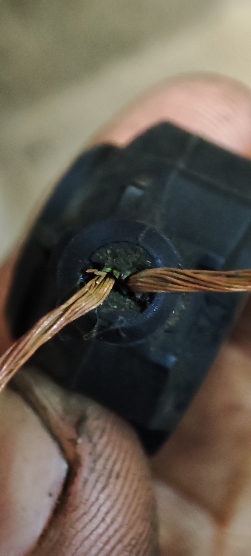 Сгнила половина кабеля, от середины до самого датчика. Причем как внешняя, так и внутренняя изоляция проводов…