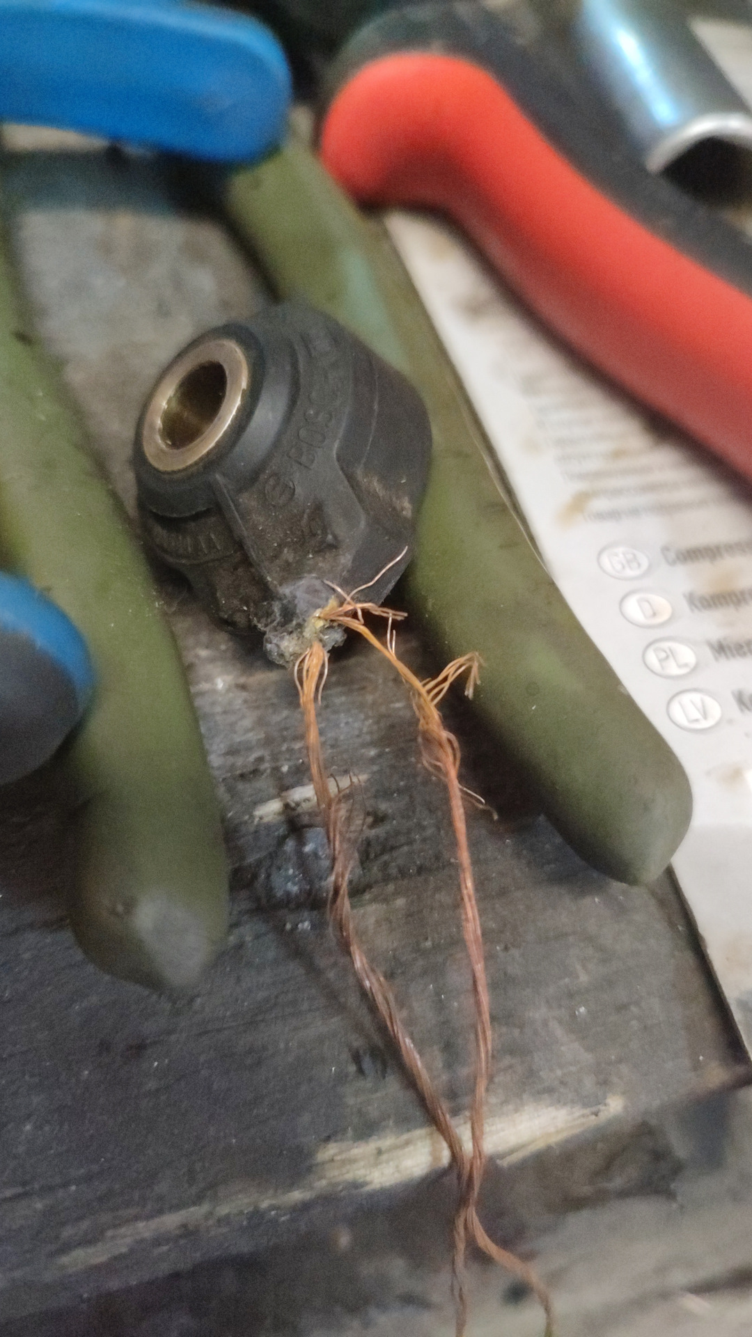 В процессе переборки впуска заметил полностью развалившуюся изоляцию датчика детонации!
