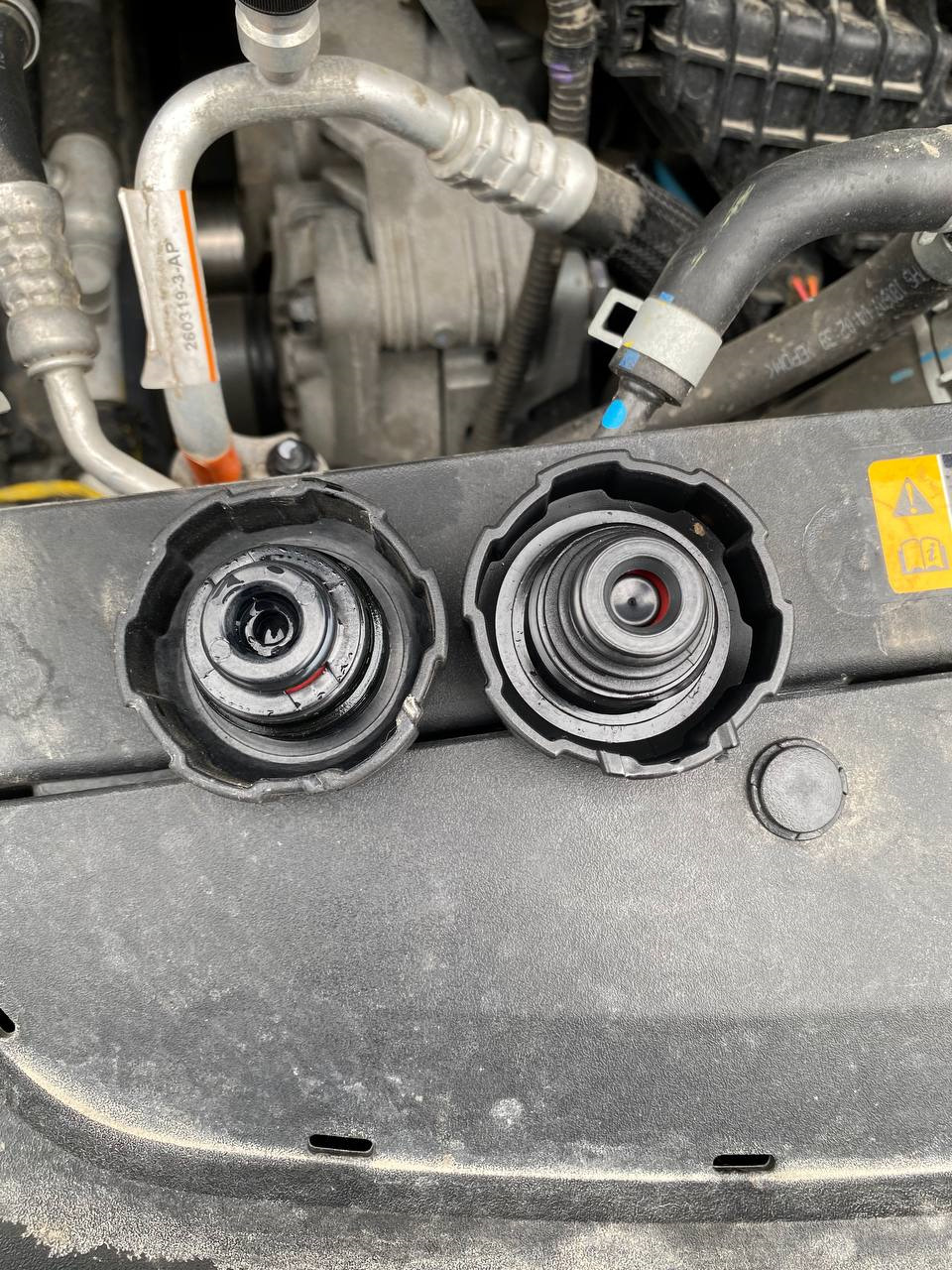 В виду случаев разорвавшихся патрубков охлаждающей жидкости на таких же моторах из-за проблем с крышкой бачка ОЖ, было решено превентивно поменять ее.