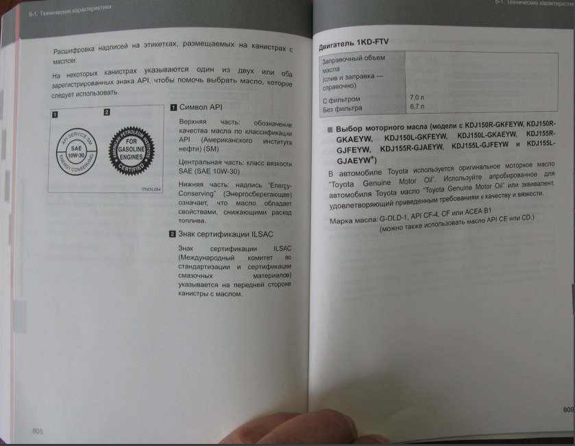 B4 — класс масла по европейской классификации ACEA. Маркировка буквой и цифрой: первая буква — назначение и зольность масла (B — полнозольные масла для дизельных моторов). Вторая цифра — эксплуатационные свойства масла (4 — масла для турбо-дизелей с непосредственным впрыском и Common Rail). В 1KD-FTV нет сажевого фильтра, поэтому можно и даже желательно использовать масла с высокой сульфатной зольностью (так называемые полнозольники), которые обладают большей защитной и моющей способностью.