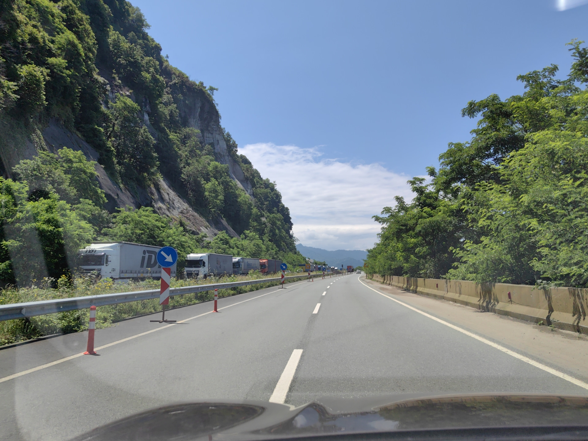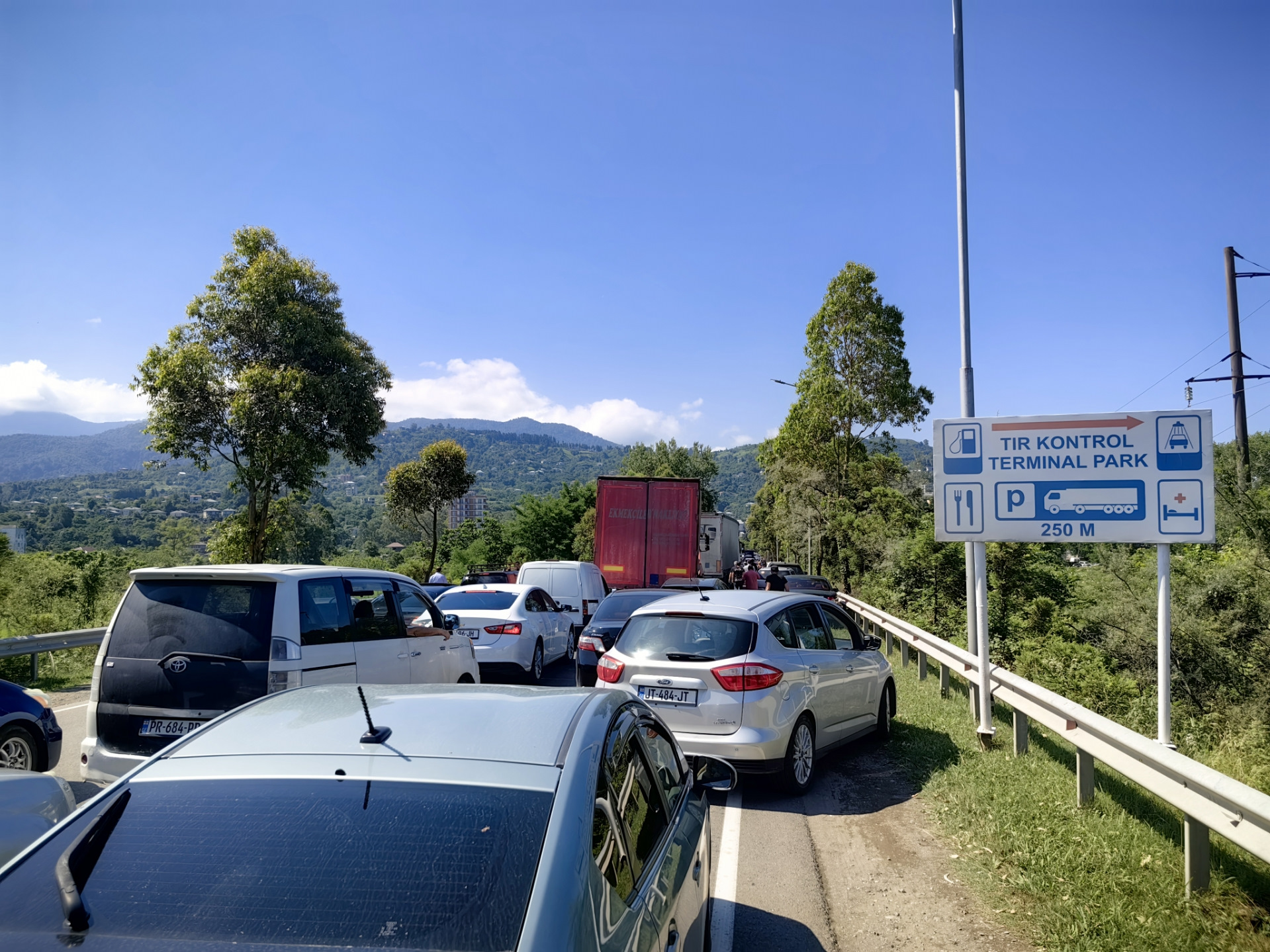 Погран переход Сарпи между Грузией и Турцией расположен в 20 км. от Батуми. На машине ехать 20-30 мин. Но нам "слегка" не повезло. Выехав из Батуми мы попали в дикую пробку возле посёлка Авгиа.