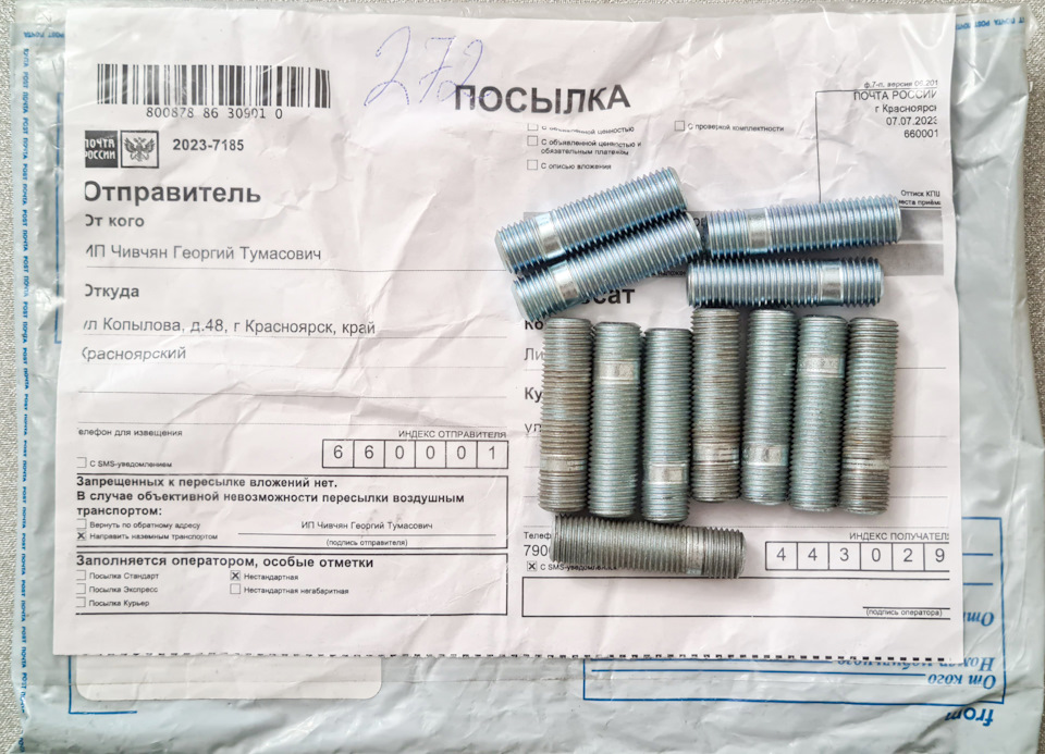 Продолжив поиски, яндекс привел мена на сайт forwardauto )), на котором шпильки к тому же и дешевле оказались, а вот доставка чето борщ. Эксперимента ради кинул в корзину и для жиги шпилек, в итоге стоимость доставки уменьшилась, а общая стоимость заказа осталось примерно той же.