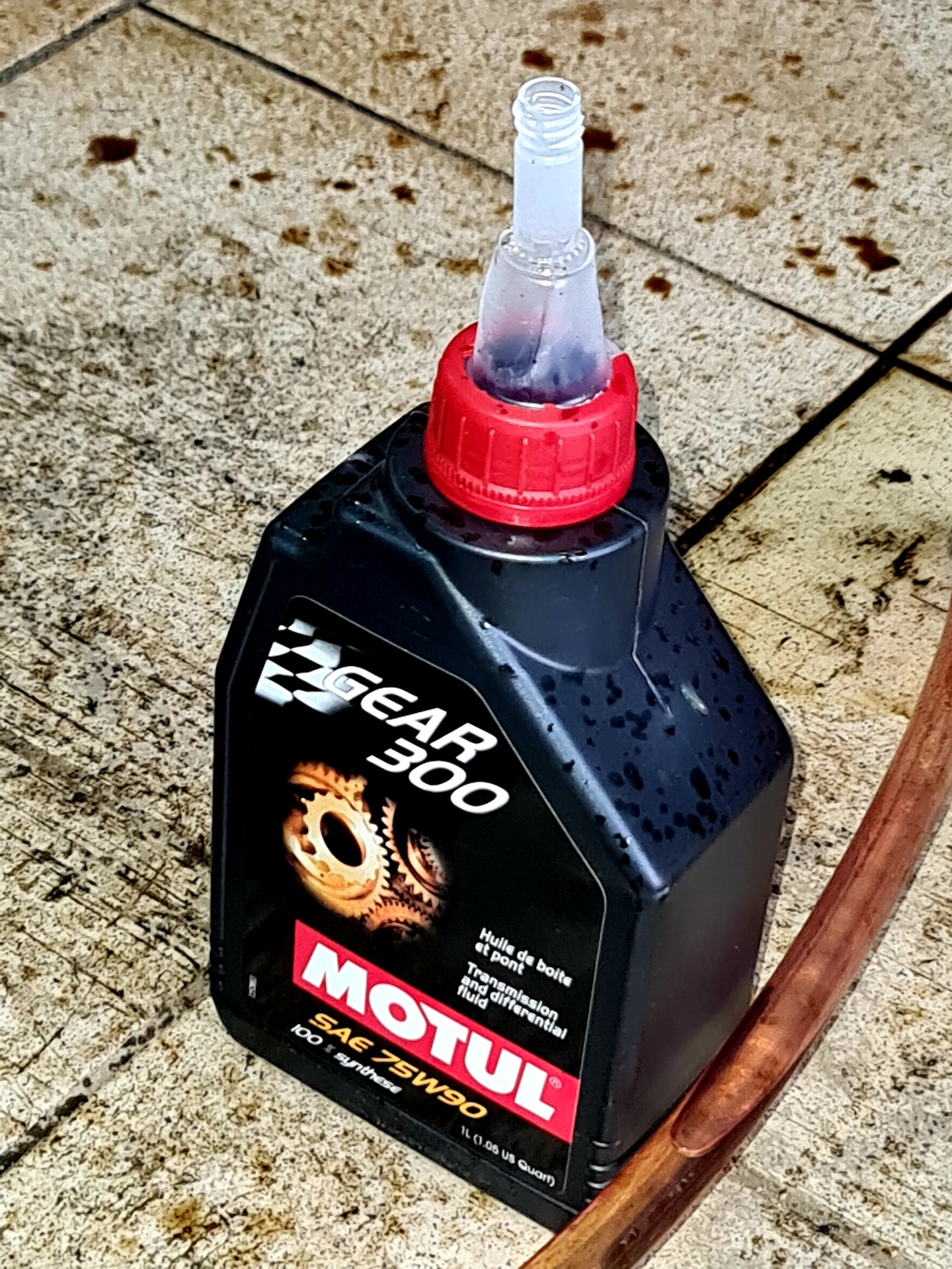 2. Также решил совместить замену масла в редукторе и раздатке на Motul Gear 300 API GL5 75W-90. Штатное масло Nissan имеет допуски API GL5 80W-90 и является минеральным (не плохо и не хорошо — просто констатация факта).