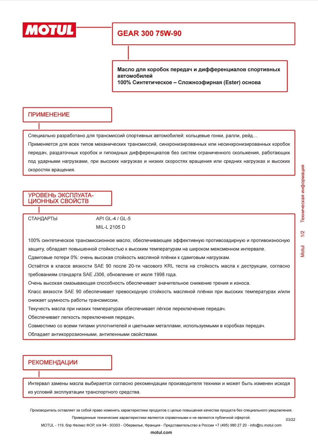 Масло Motul Gear 3000 знакомо ещё со времен езды на Infiniti QX56. Одно из лучших. Масло для коробок передач и дифференциалов. 100% Синтетическое – Сложноэфирная (Ester) основа.