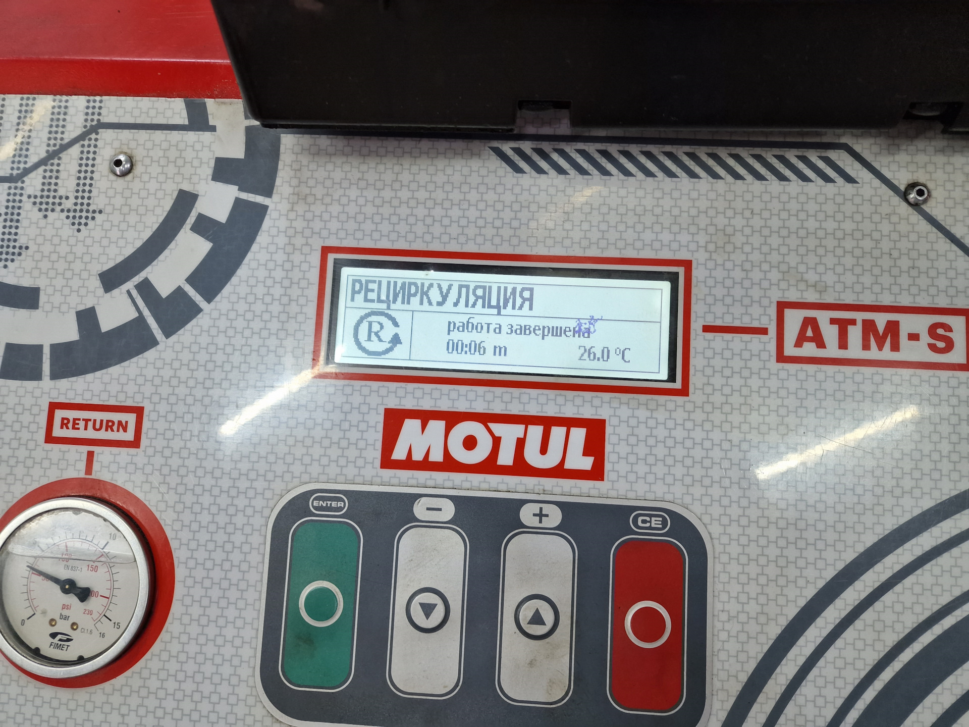 Замену масла поехал делать не к ОД, а в MotulGarage motul-garage.ru/ путем замена на аппарате. Для этой операции нужно примерно 12л масла или 3 канистры по 4л.