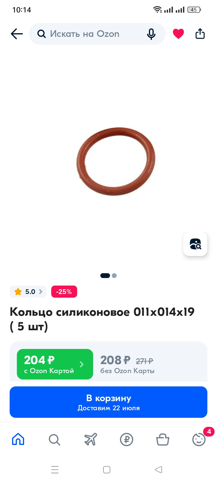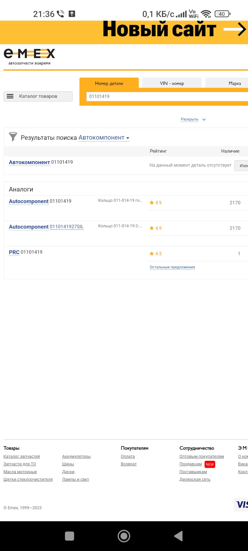 И вот настало время для заказа его 011-014-19, фирм изготовителей этого резинного изделия хватает достаточно. Я взял колечки фирмы "Автокомпонент" /011-014-19/ ГОСТ 9833-73 😎 аж 3 штучки по 11 рублей.