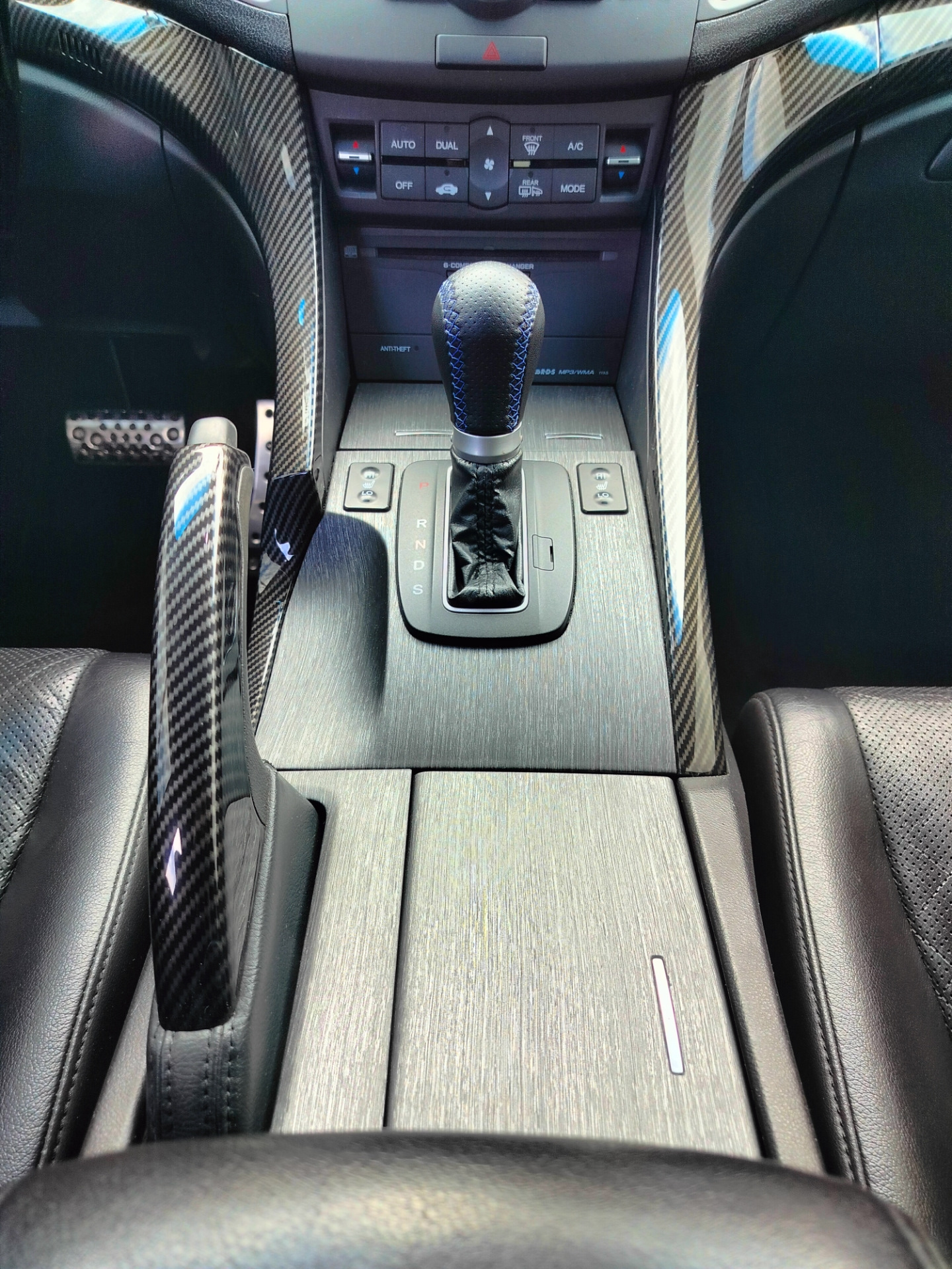 А вставки на дверях и центральную консоль решил сделать в тёмный шлифованный алюминий и главное матовым