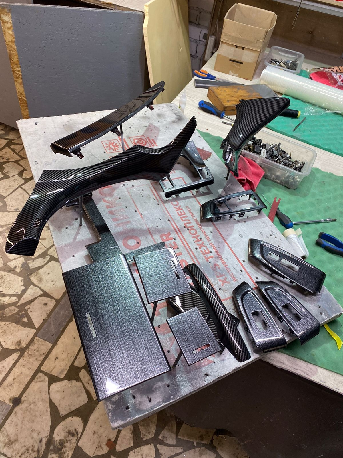 Так как руль решено было сделать с карбоновыми косточками, то и пластик тоже под карбон, только аквапринт.
