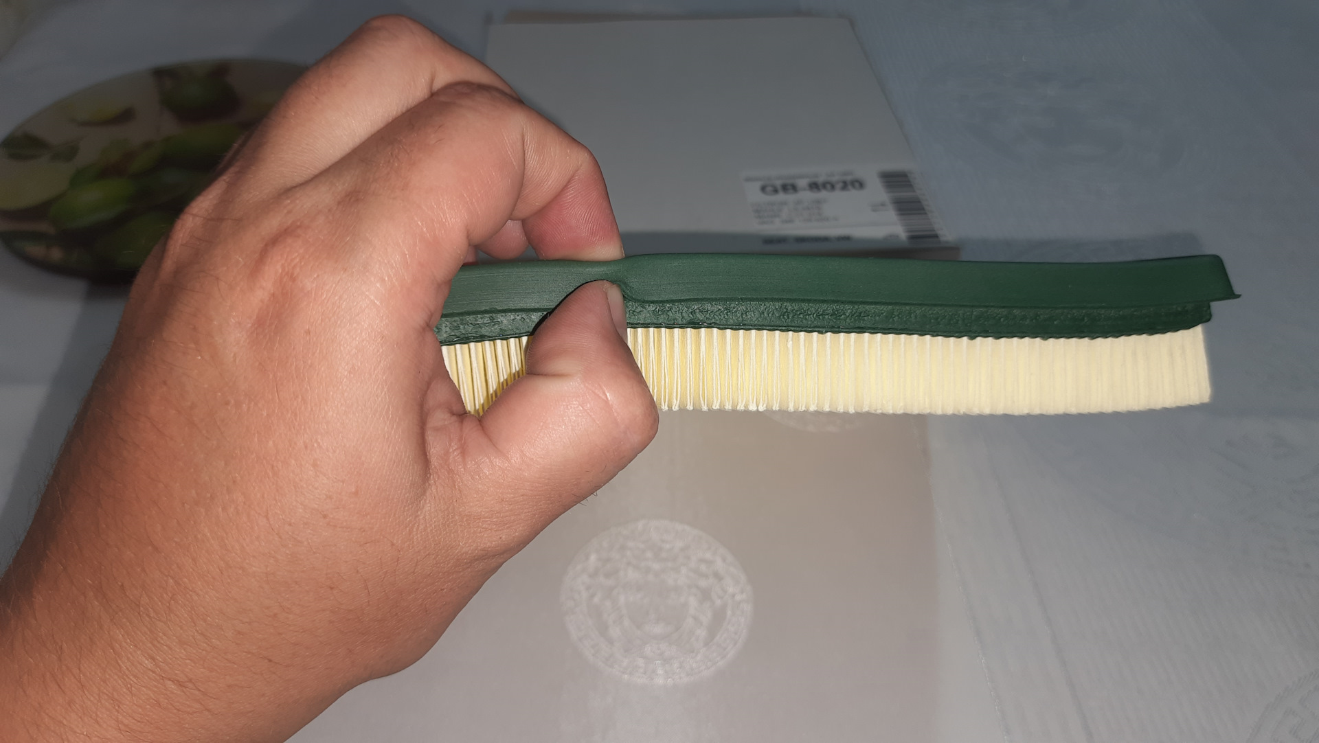Фильтр не гнется, а немного преломляет корпус по диагонали. На всех моих предыдущих машинах стоял фильтр именно в жестком исполнении. Был сильно удивлен когда увидел гибкий фильтра на "НЕМЦЕ". Ноя все же существуют в природе жесткие. Очень интересно как он себя поведет.