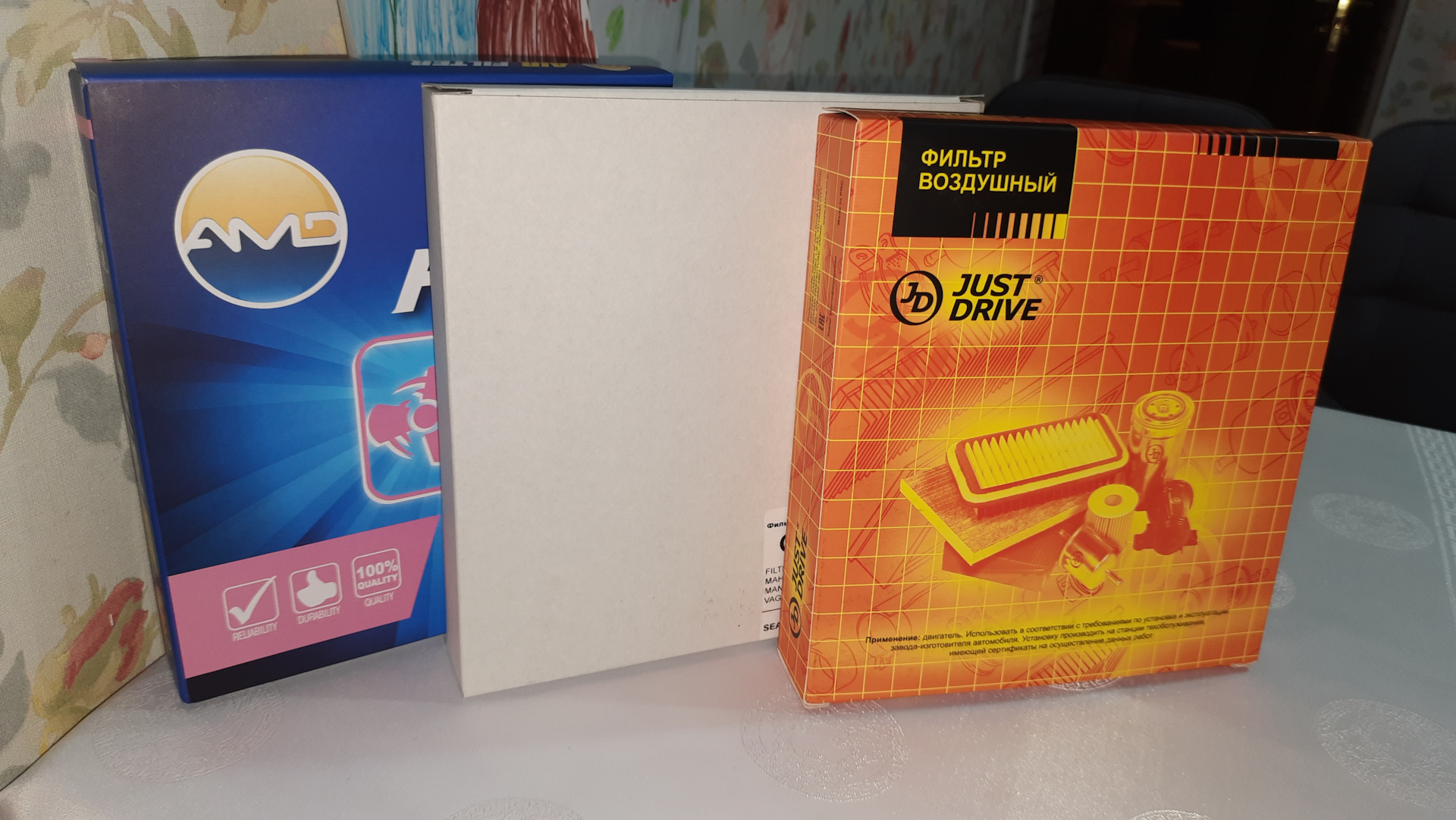 Тут их только у меня два. AMD обычный фильтр к заказу друг в магазине не нашел. Ну и ладно, посмотрим что из себя представляют две другие фирмы. Как ноги из вас знают, я давно не верю в "ЧУДО" угольных фильтров. Гарь в салон они пропускают точно так же как и обычные. в год у меня пробег в районе 10000 км. Салонники меняю ха это время три раза. Перед зимой и два раза в пыльный сезон.