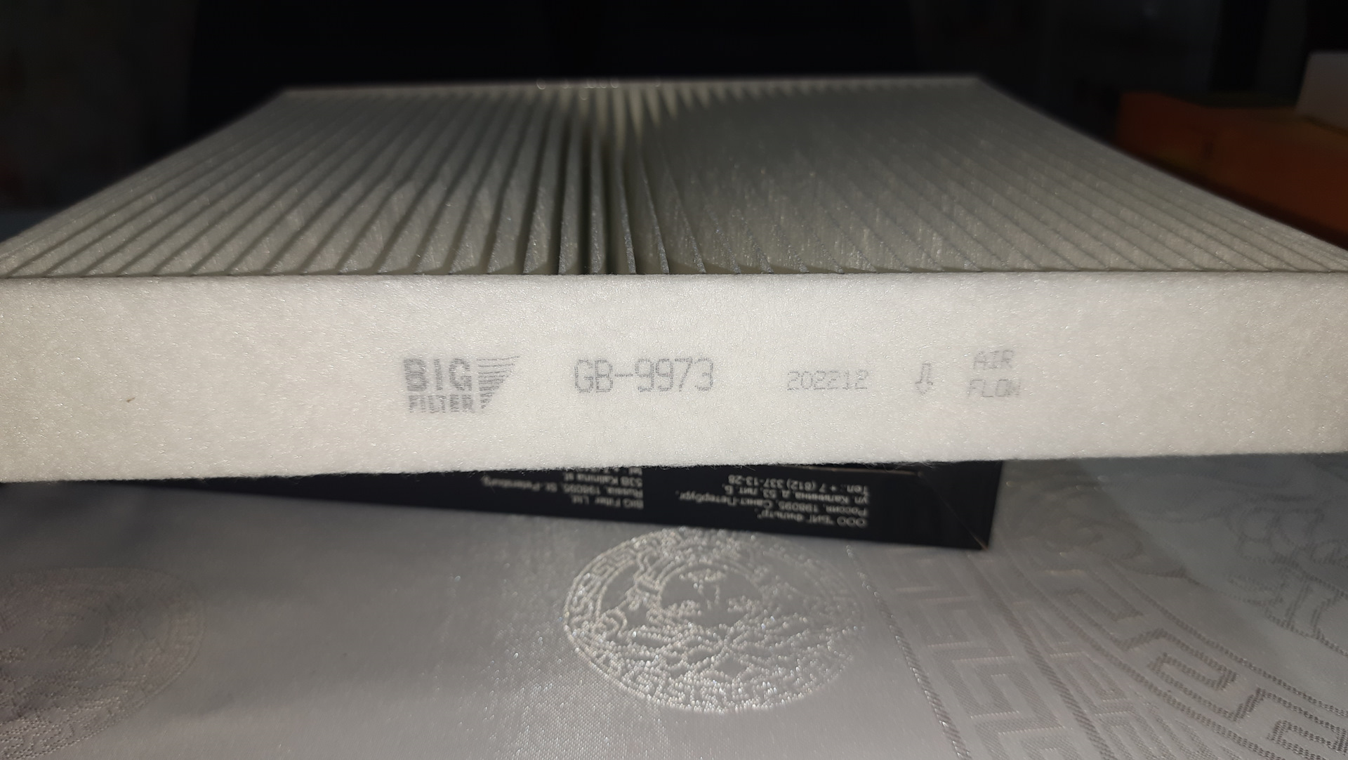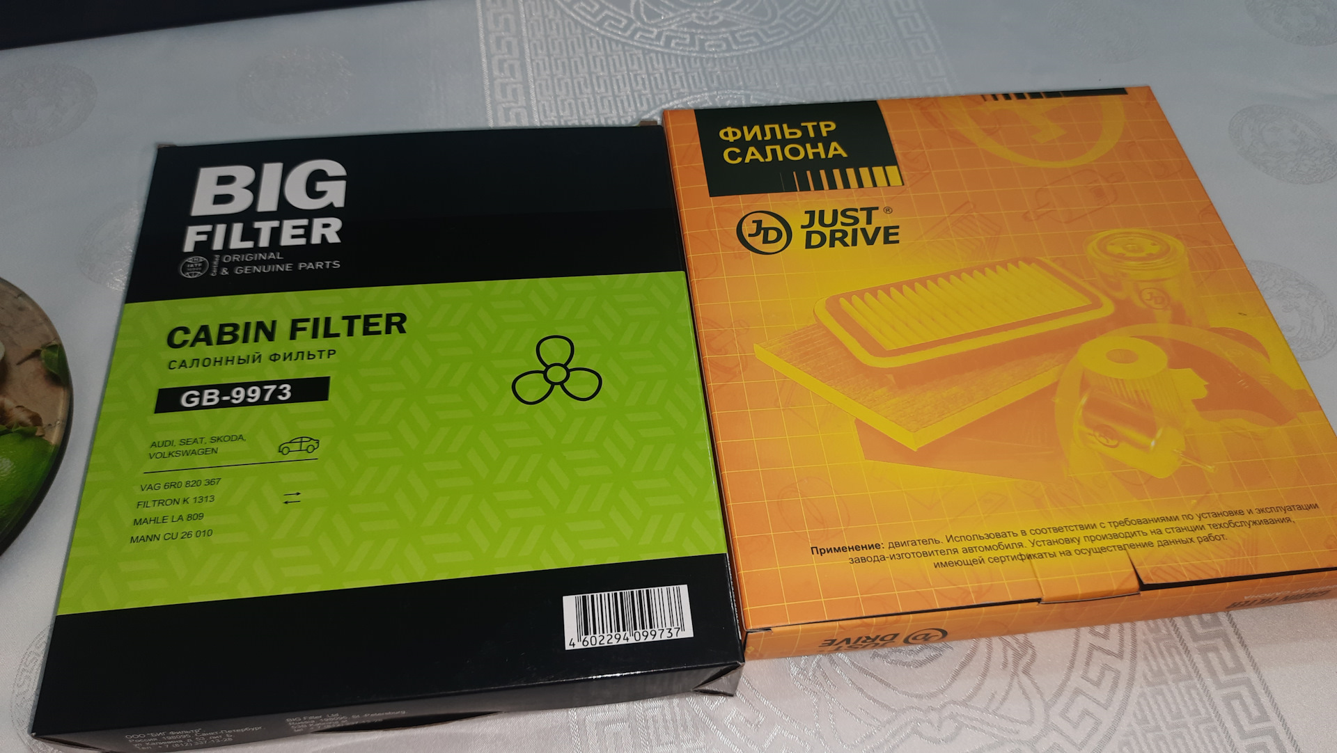 Масляный и воздушный ставлю второй раз BIG. Салонный стоит GB-9973/CA, типа антибактериальный, зелёного цвета. Это конечно не Бош с Маном, но справляется. Запахи в салон редко проникают . И для информации, BIG салонные фильтры модернизировал. Начал ставить торцевые планки . Лично у меня фильтр не деформировался . Я его вначале вставил в заглушку и придерживая вставил в корпус «печки». bigfilter.com/company/pre…ya-salonnykh-filtrov-vag/ информация по модернизации.