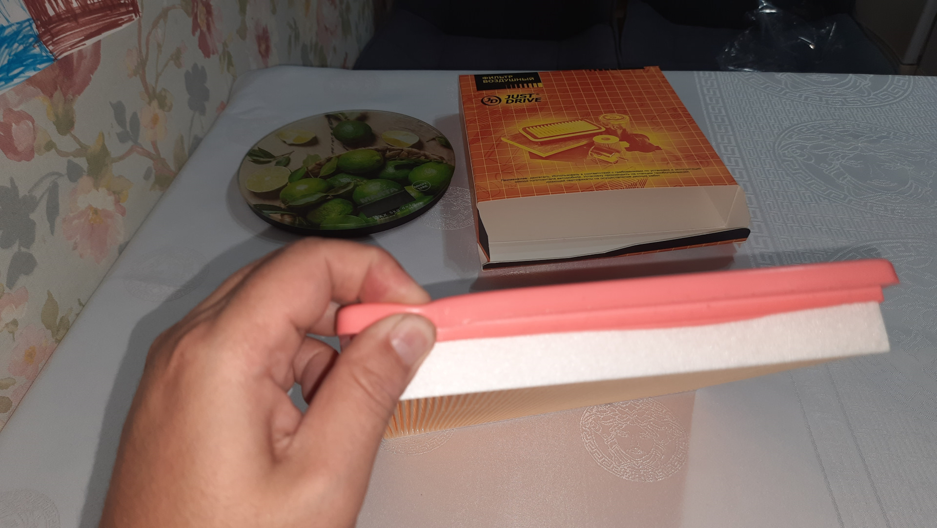 А вот и самая главная "Ложка дегтя". Из коробки фильтр уже потерял форму и довольно сильно изогнулся по краям. Я теперь сомневаюсь в целесообразности его установки.