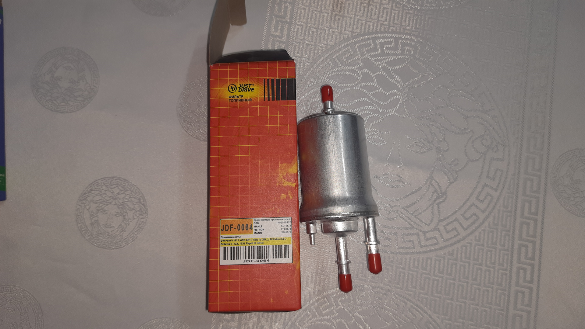 С виду все три топливных фильтра конструктивно очень похожи. Но на JUST DRIVE JDF0064 в отличии от собратьев отсутствуют надписи.