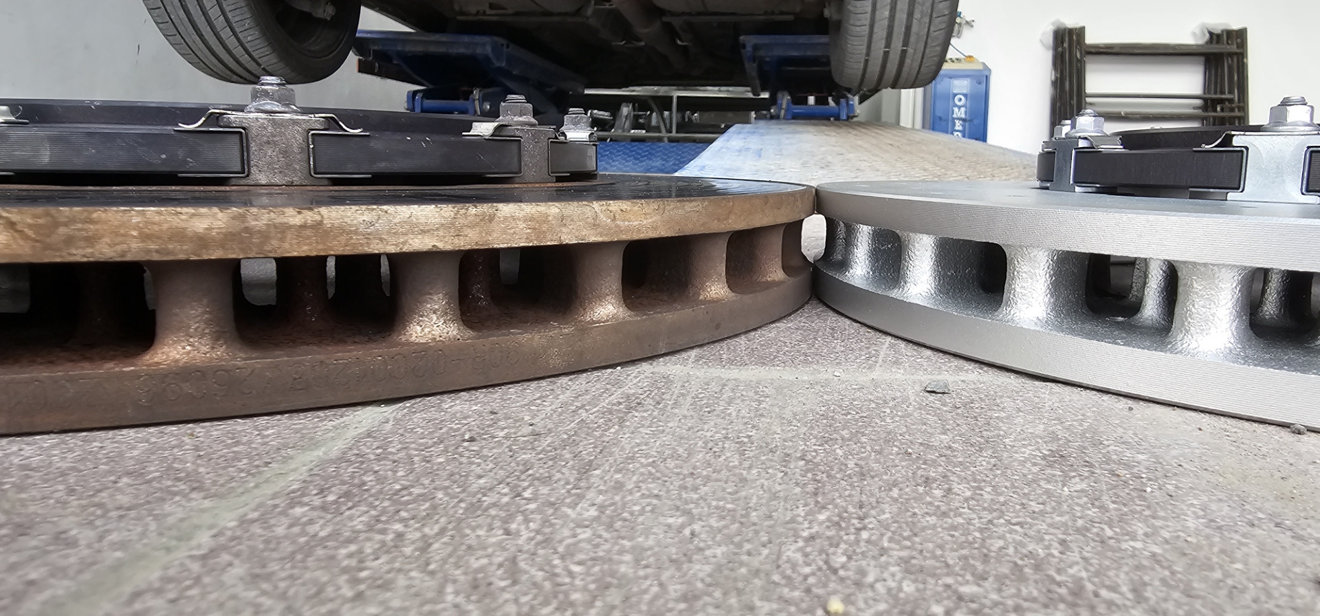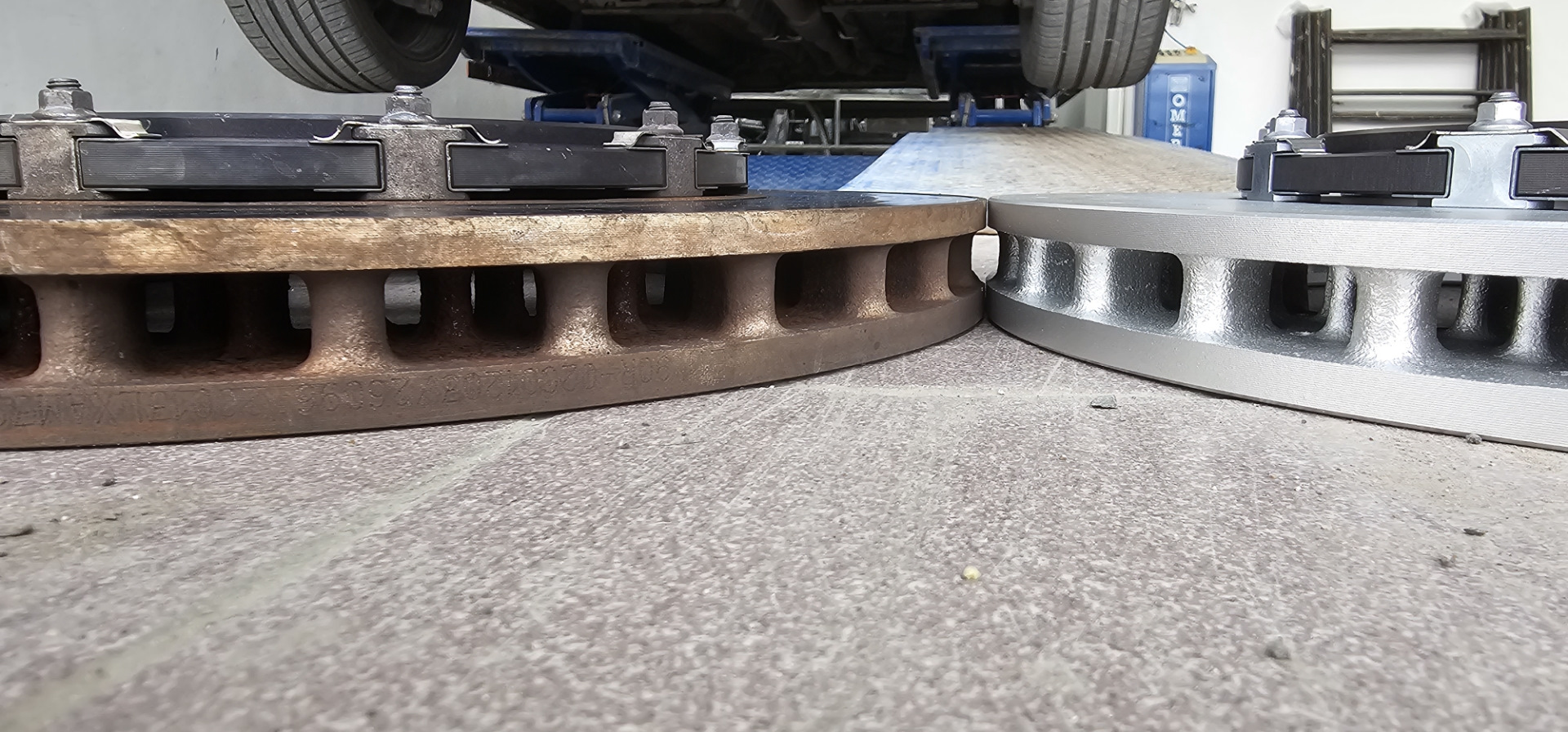 PS. Для наглядности выложил фото старых и новых дисков, на фото видно что даже с учётом проточки разница в толщине не особо заметна, общий износ с наружней стороны 1мм, с внутренней износа практически нет.