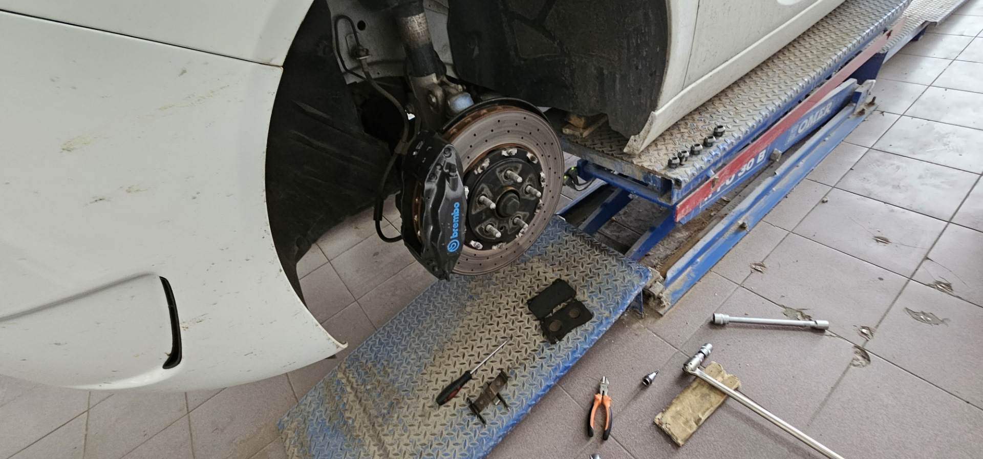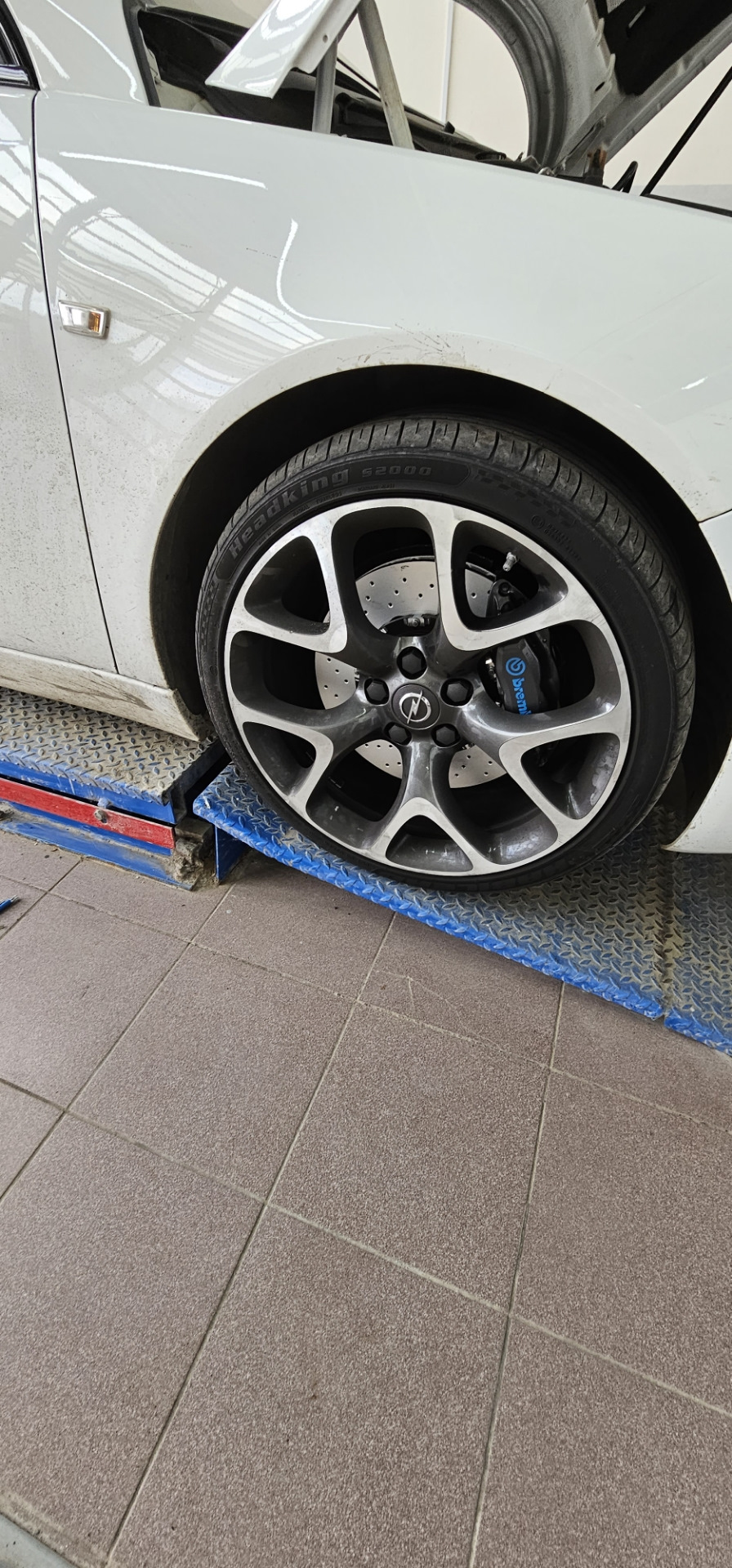 В общем замена тормозных дисков на Opel Insignia OPC производится как на обычном автомобиле, а вот замена колодок раз в 15 быстрее, так как нужно просто выбить метчиком 2 шпильки с суппорта и достать старые колодки, конечно же не забыть развести тормозные цилиндры.