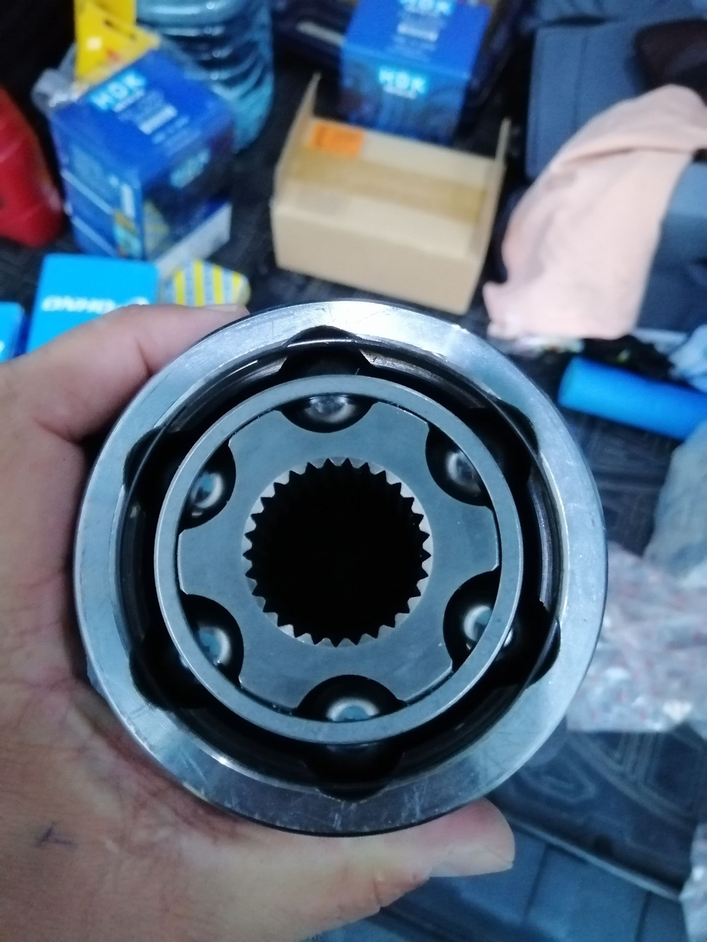 В феврале правый внешний отрыгнул, сейчас левый внутренний. Раз уж есть тенденция — надо менять по максимуму. Кардан еще работал, но "вскрытие" показало, что крестовины сухие, а задняя закусывает, к тому же. Если экономно, то можно было ограничиться заменой левого трипоида и ремонтом кардана. Но тут уж каждый суслик — агроном.