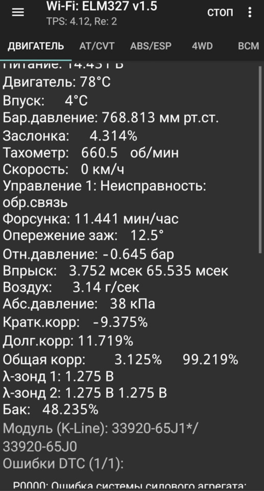 Вот пример кривой прошивки. Лямбда 1 ругается на неисправность, ошибка 0000 висит, если её снять, то на 3 сек неисправность убирается и работает "обратная связь".