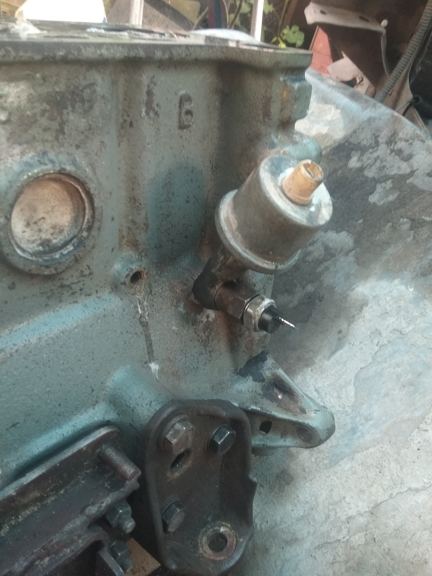 Прокладку под колокол вырубил из старой картонной папки. Додумались блин в воскресенье выходной сделать в автомаге. Шпильки под РЦС естественно посадил на фиксатор.Поставил коробку, мотор, на мотор сапун и помпу прикрутил ещё до установки.