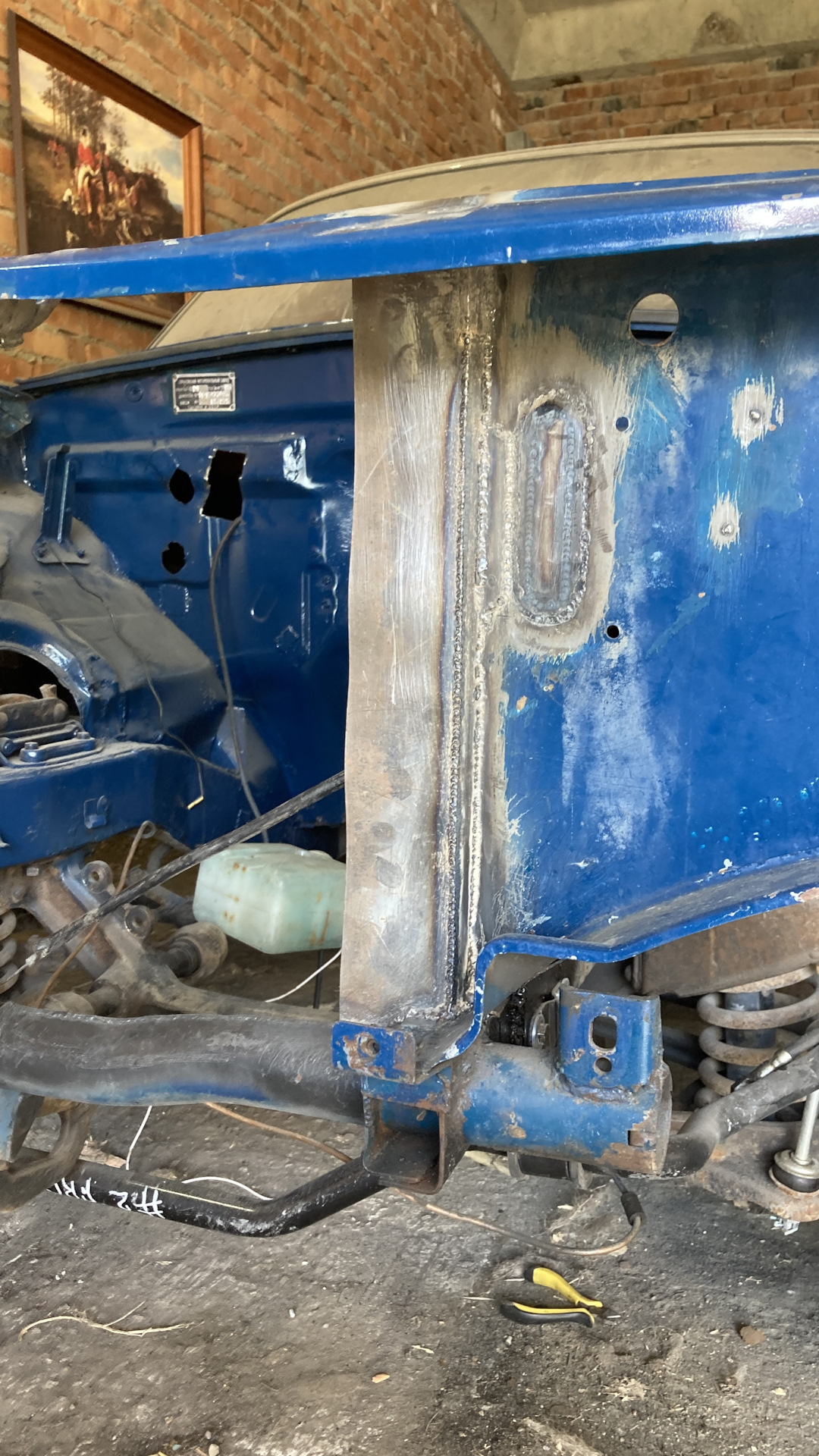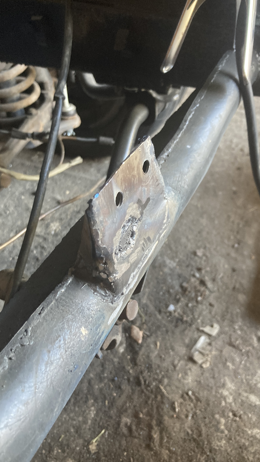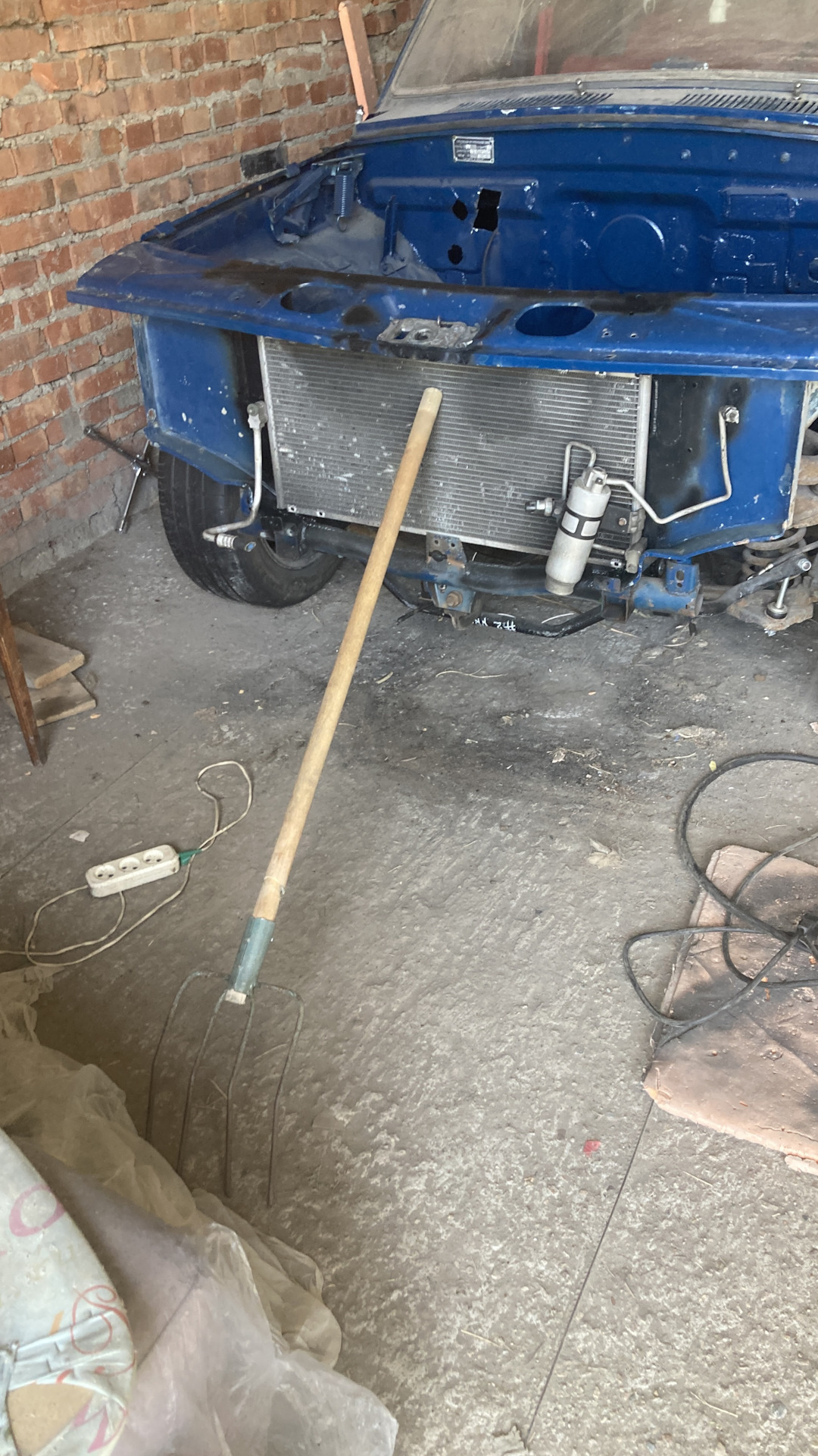 «Харя» она же крепление косого фронтального усилителя, изначально ее подпилил и загнул, планировал ее отпилить и уже собирался это сделать, как вдруг возникла мысль прикинуть радиатор кондиционера, чутье мне кричало сначала надо померить, а потом пилить)) все подошло и началась «реставрация хари»