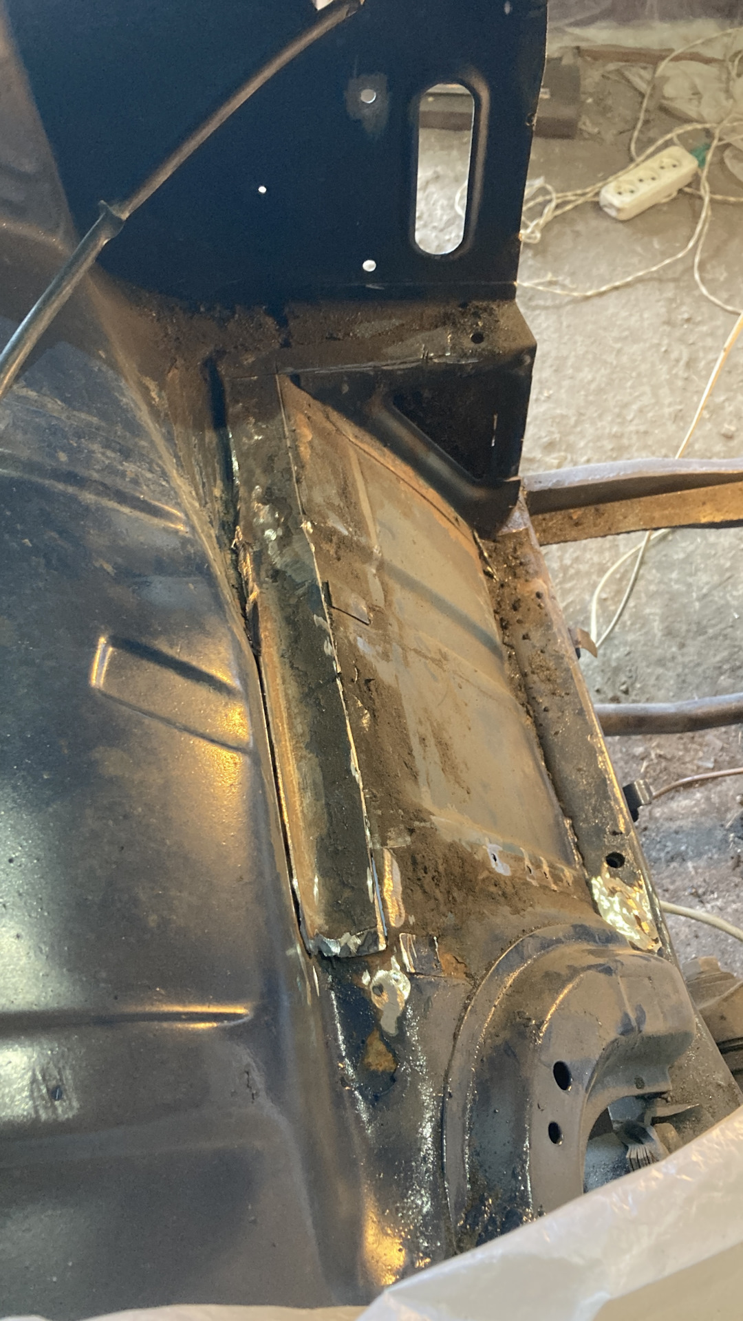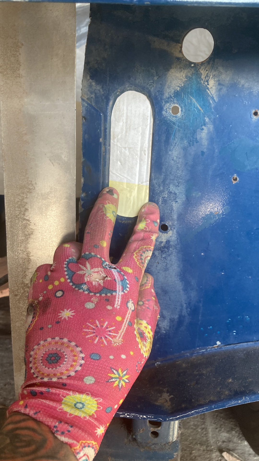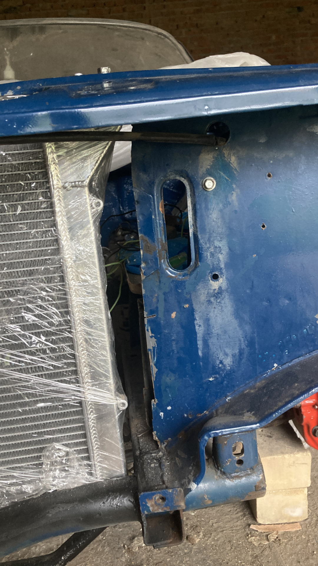 «Харя» она же крепление косого фронтального усилителя, изначально ее подпилил и загнул, планировал ее отпилить и уже собирался это сделать, как вдруг возникла мысль прикинуть радиатор кондиционера, чутье мне кричало сначала надо померить, а потом пилить)) все подошло и началась «реставрация хари»