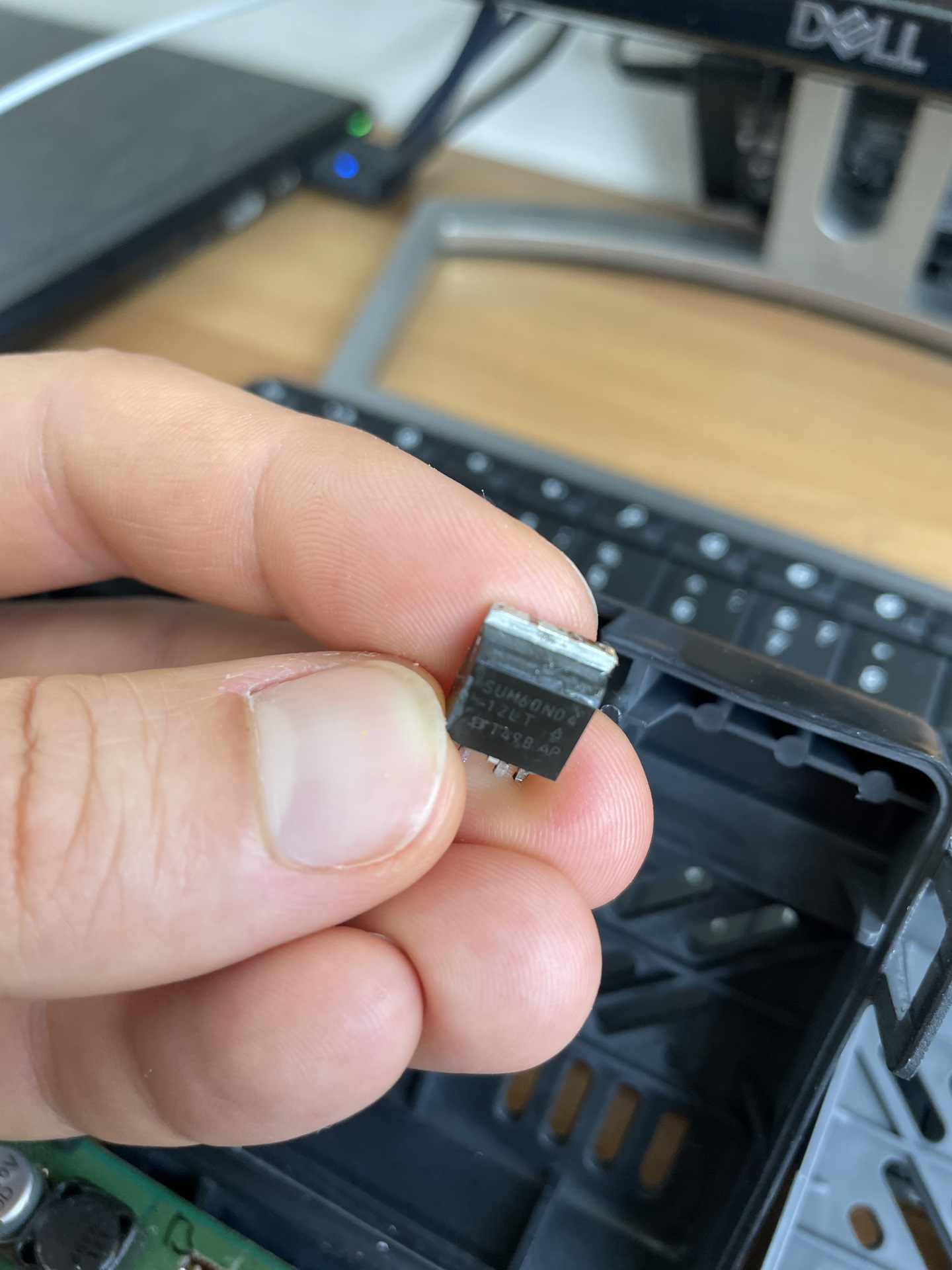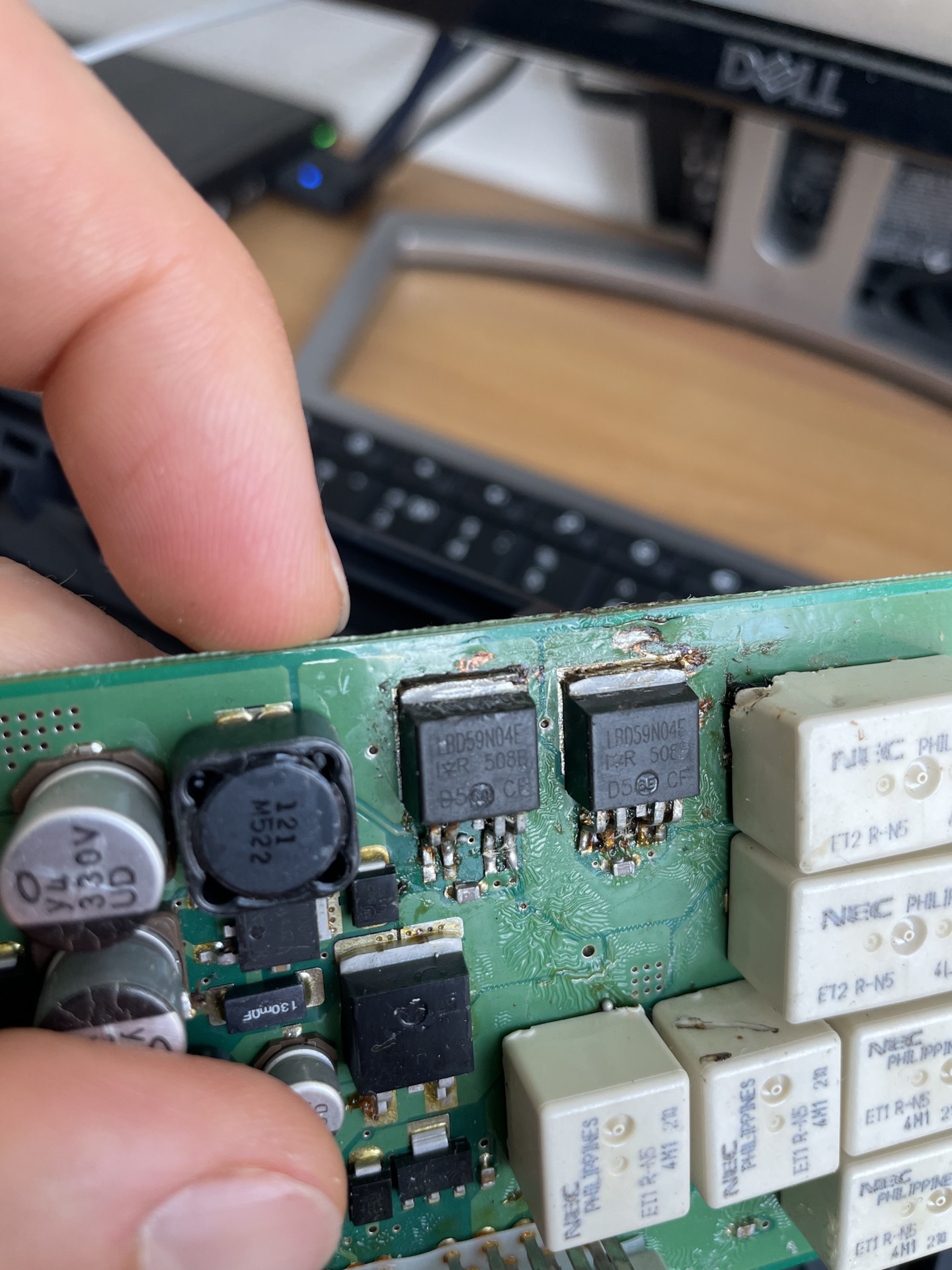 6. Выпаиваем mosfet-транзиторы и проверяем их — у меня в блоке от 21 года один вышел из строя, в блоке от 22 года оба живые.