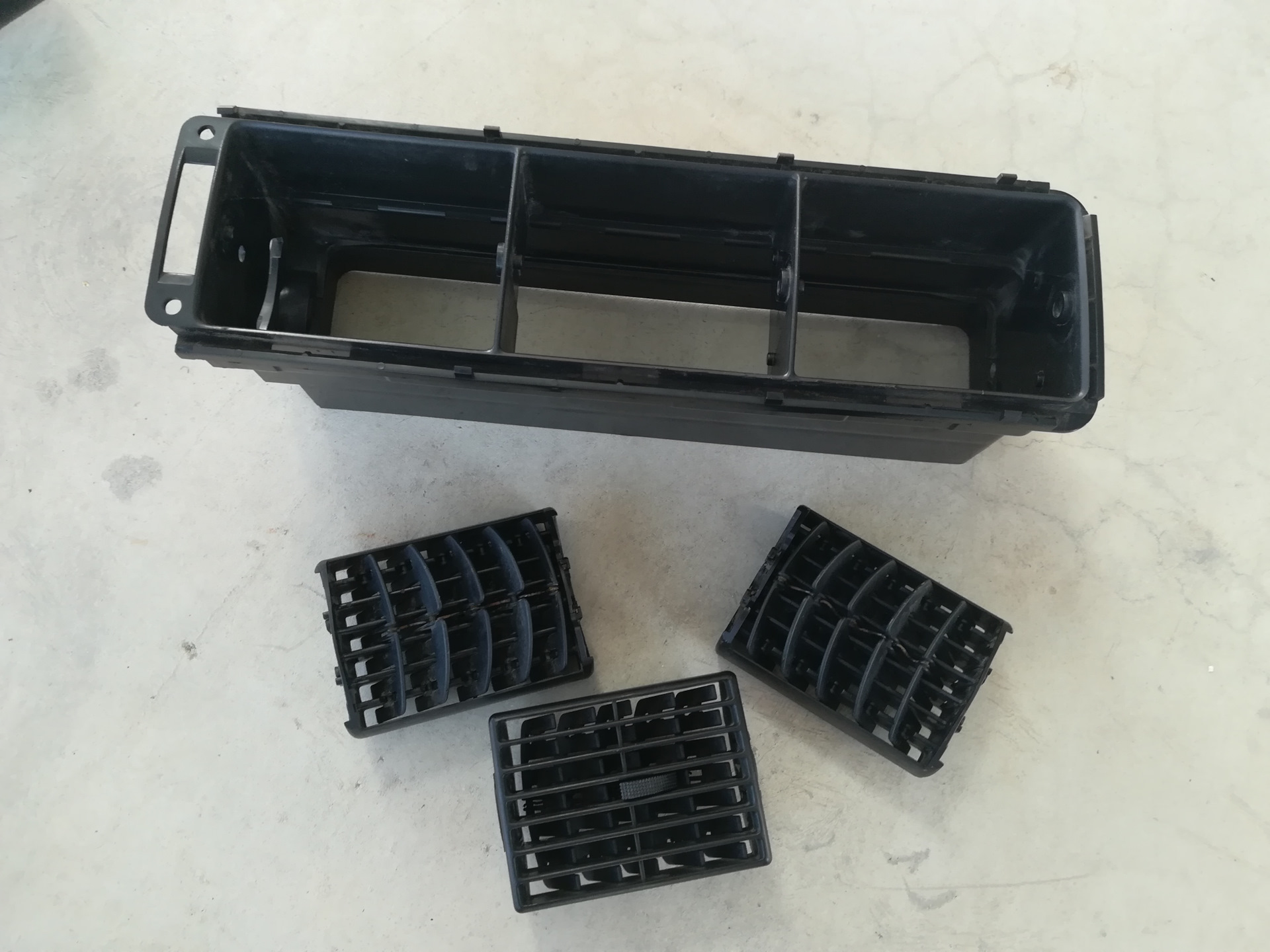 Место как вы наверно догадались я под неё нашел, но чем то приходится жертвовать… Прикинув еще до покупки размеры, выяснил что она неплохо должна встать на место центральных воздуховодов. Сейчас лето, у нас жара за +30, установленный климат работает отлично, и я специально попробовал поездить с закрытыми центральными дефлекторами, и… сделал вывод что убирать их нельзя, во всяком случае полностью, тк они заметно участвуют в охлаждении салона. Решил их уменьшить, сохранив функционал.