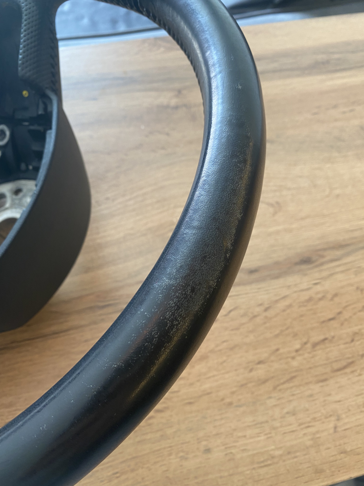 Кожа была изначально, в принципе, в неплохом состоянии, но в верхней части руля уже протерлась.