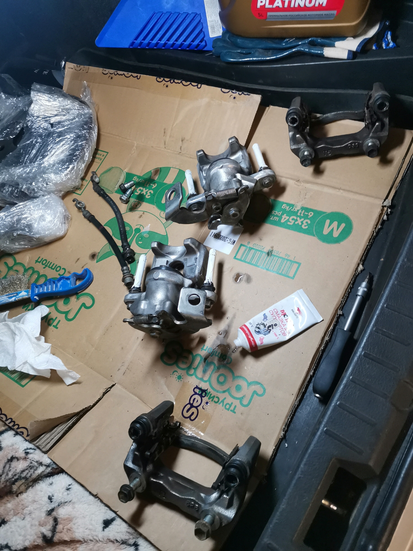 Тот "ремонт" задних суппортов напомнил о себе только спустя почти год(спасибо что так долго), а мы уже готовы, заказан и установлен контракт комплект 2 суппорта, 2 диска и комплект колодок от него же(15к с колодками)
