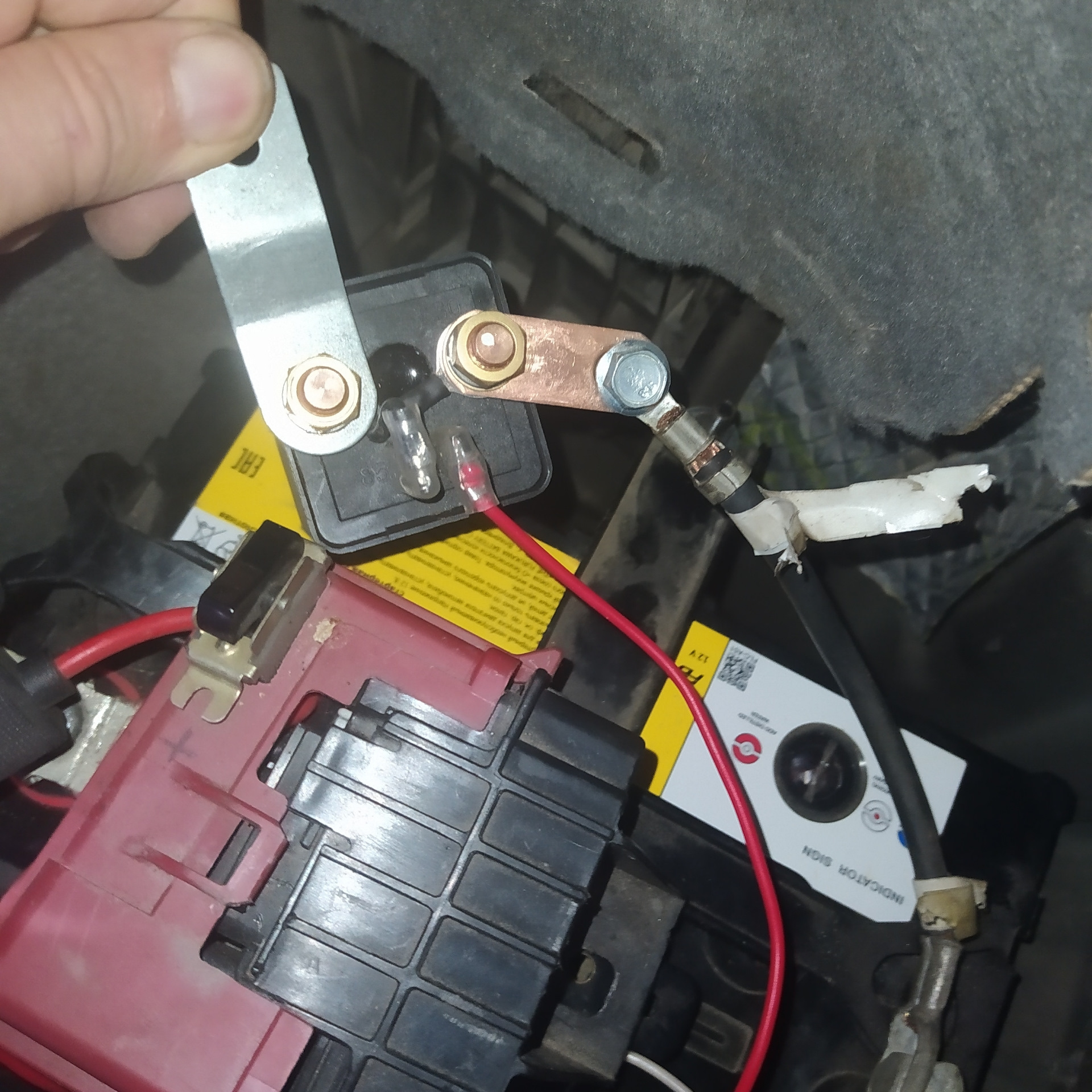 Аккумулятор больше не разряжался, но как показала зима, пользование таким размыкателем массы оказалось проблематичным.