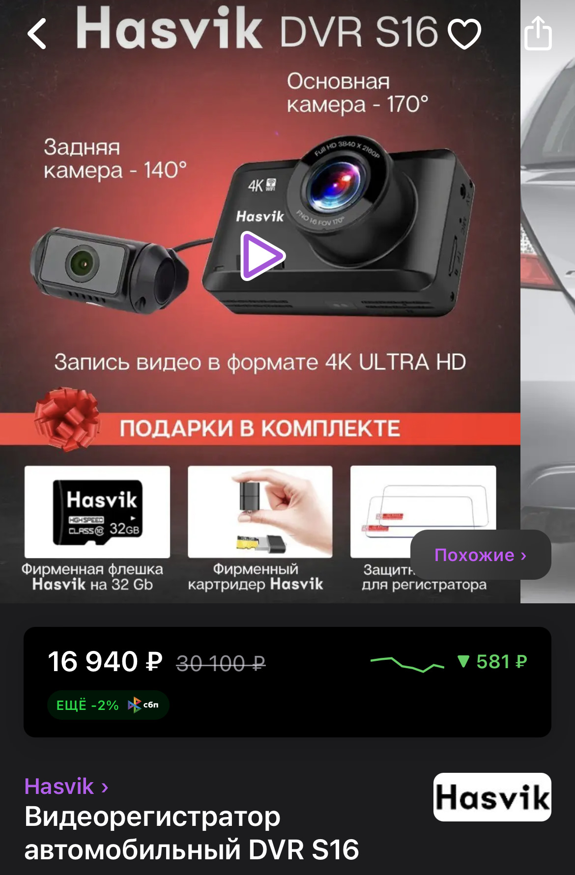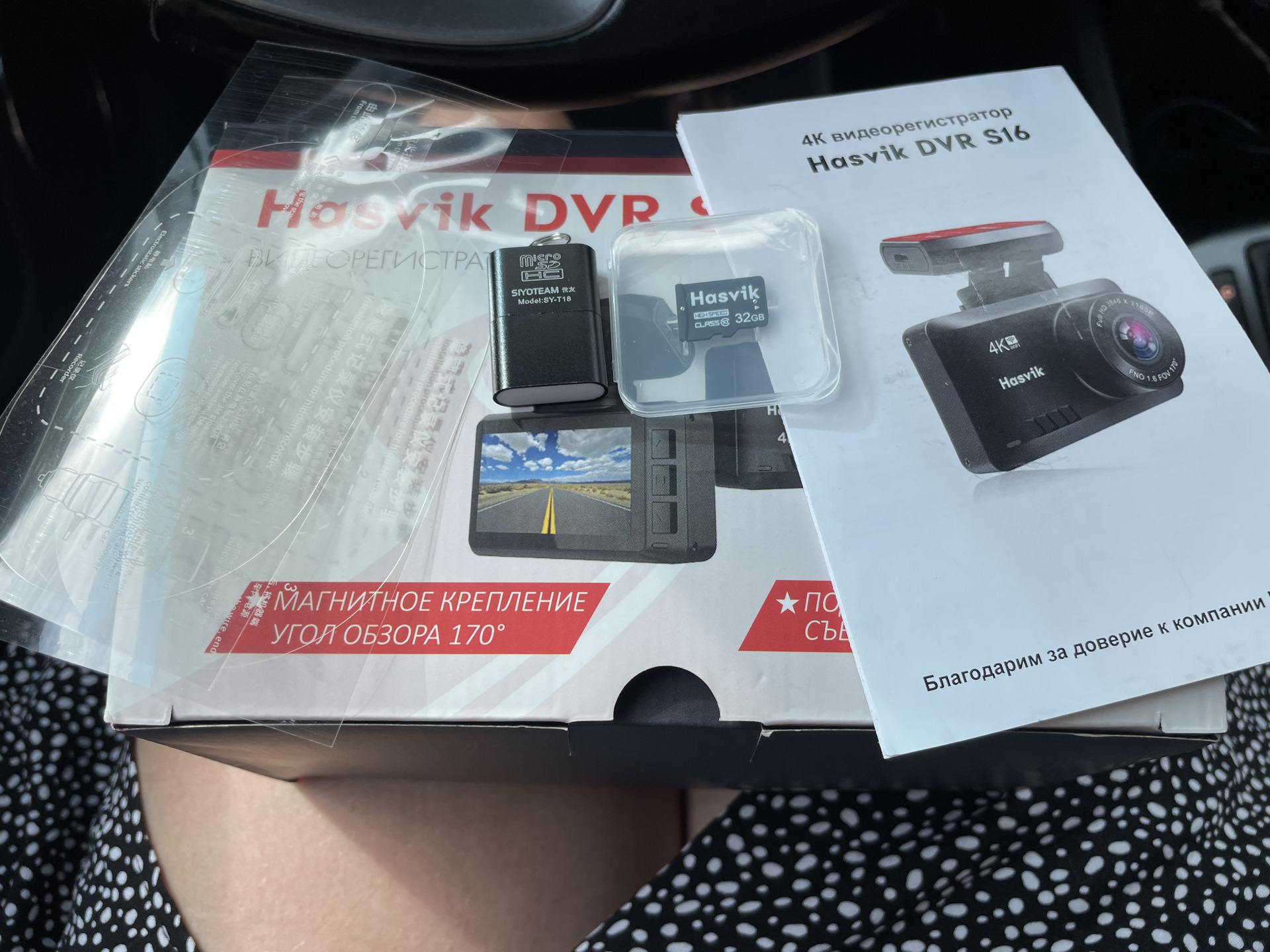 ✔ Карта памяти Hasvik 32 Gb class 10. С флешкой все понятно, это неотъемлемая часть любого видеорегистратора, без нее никак. Хорошо, когда она уже есть в комплекте.