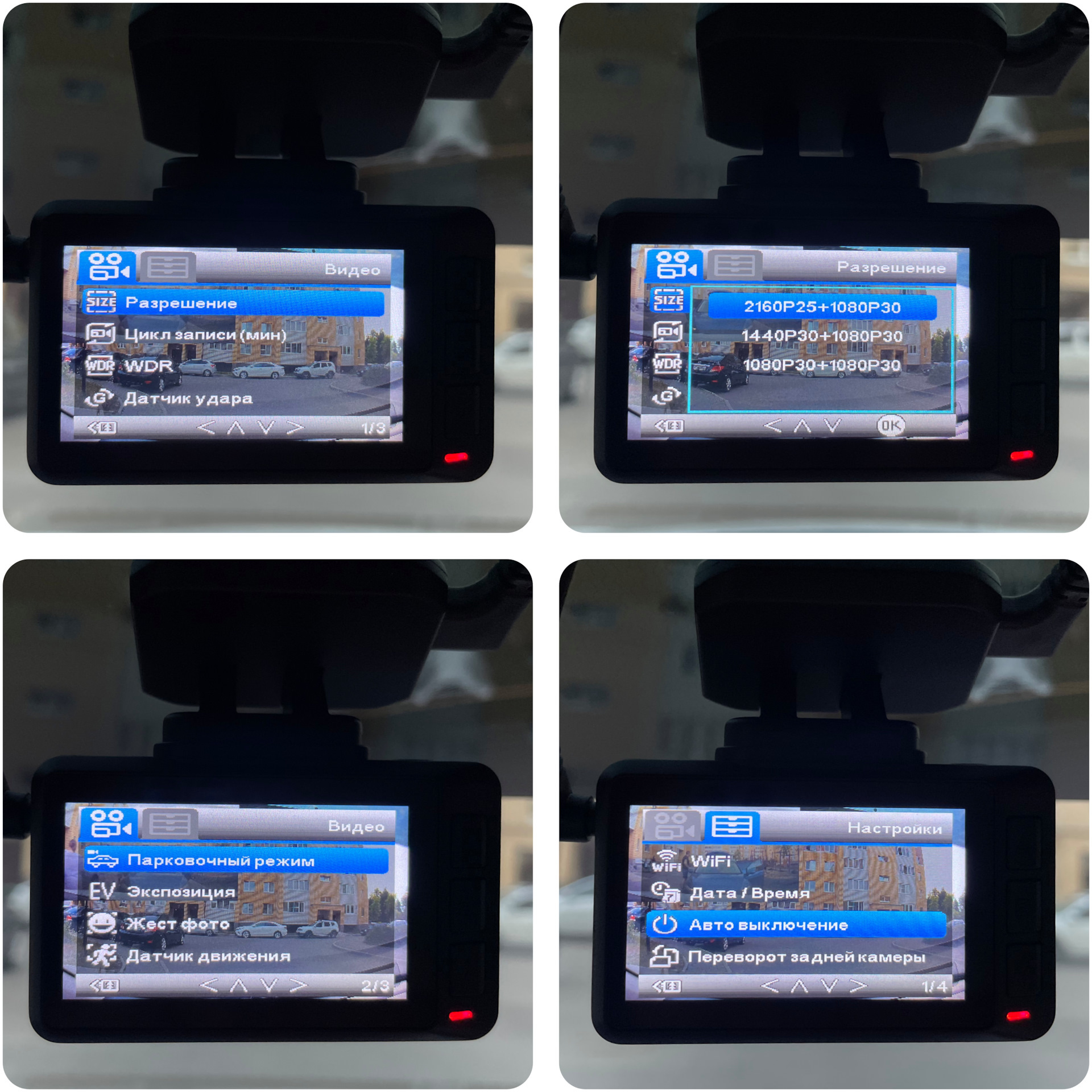 видеорегистратор снимает видео в качестве 4K. Камерой заднего вида происходит съемка в качестве Full HD.