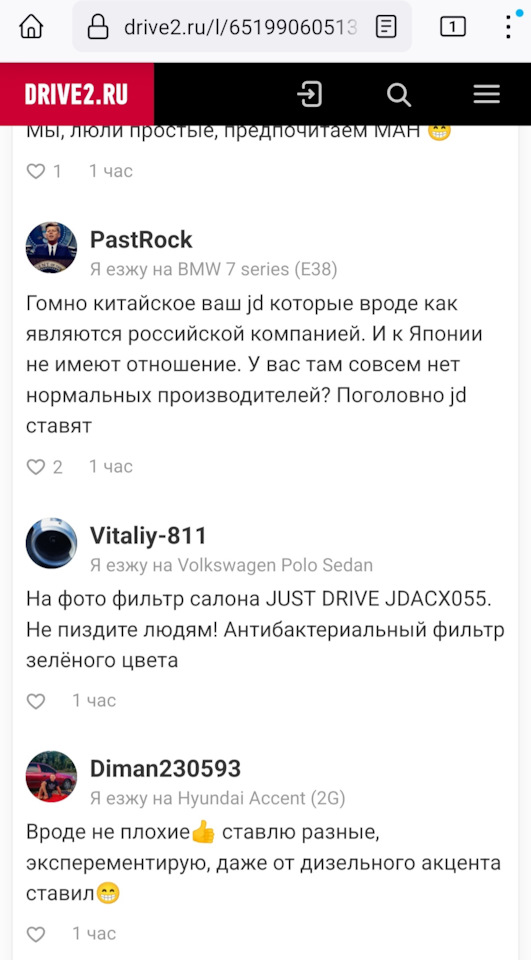 Фильтр салонный Just drive (писал ранее в БЖ)