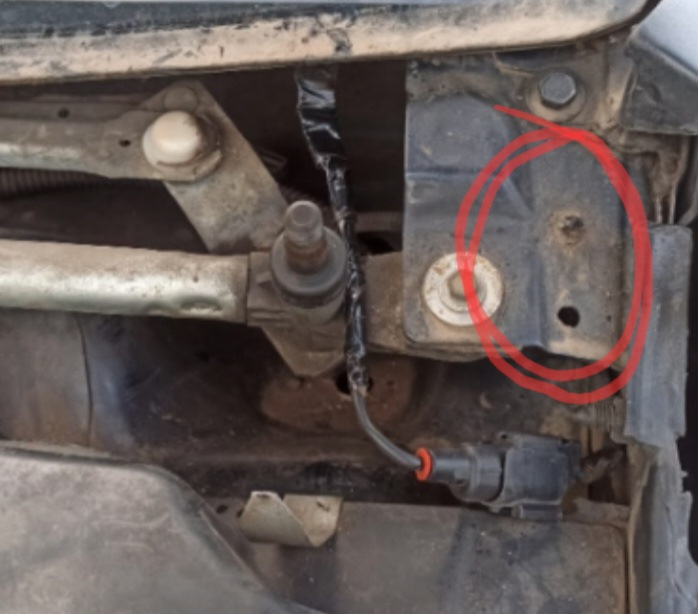 Насколько я помню, провод должен проходить под трапецией дворников и фиксироваться снизу клипсой вот в эти отверстия.