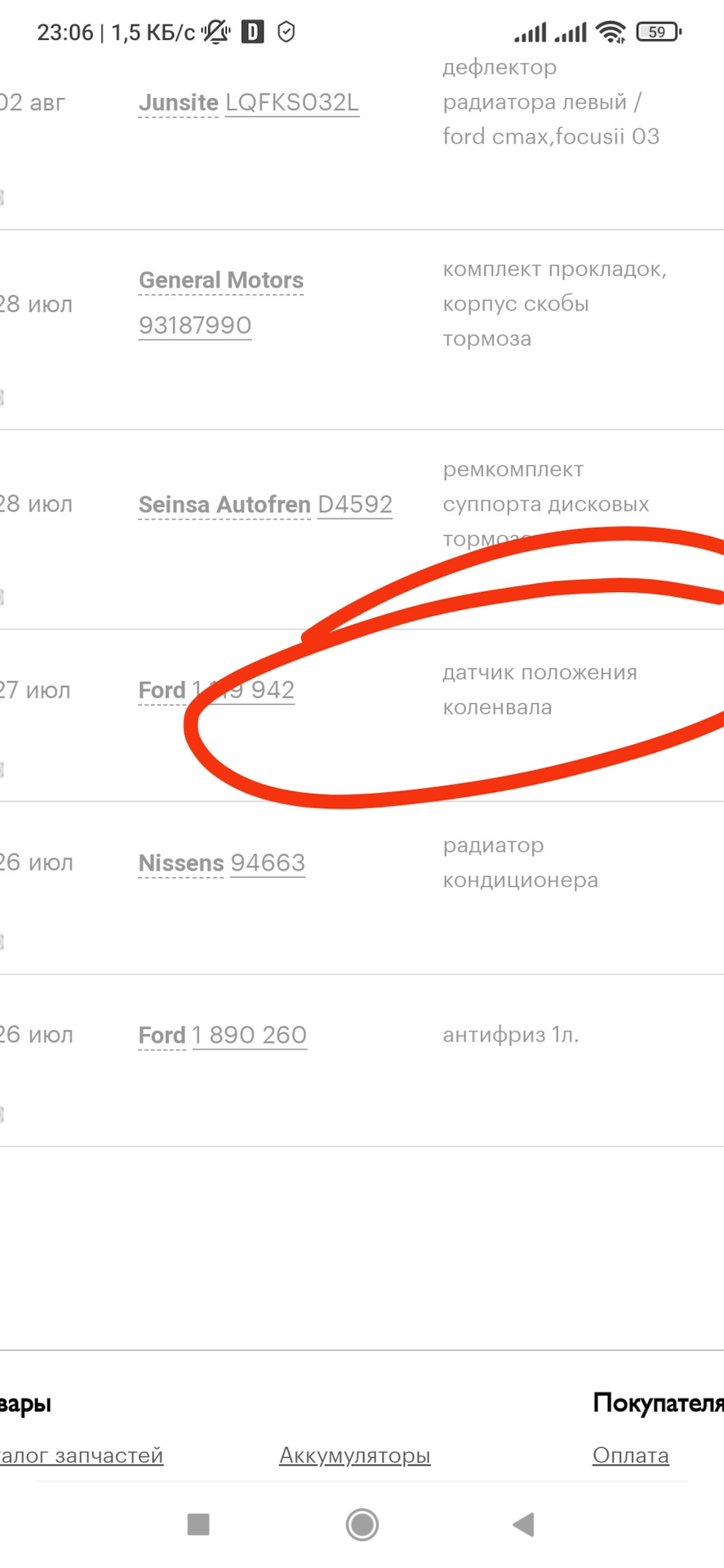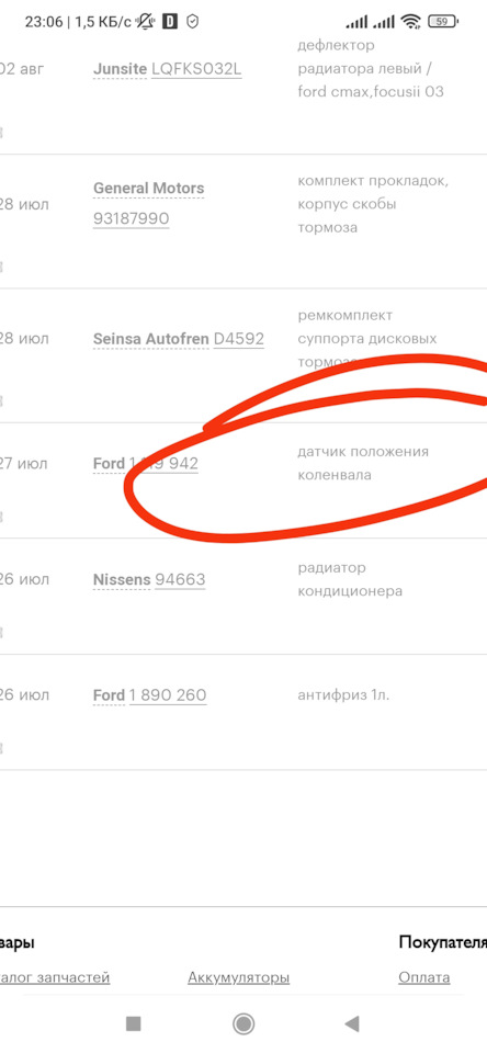 Так же заметил запотевание, на датчике положения рапредвала. Заказал оригу, арт 1 119 942. Цена 1207 руб.
