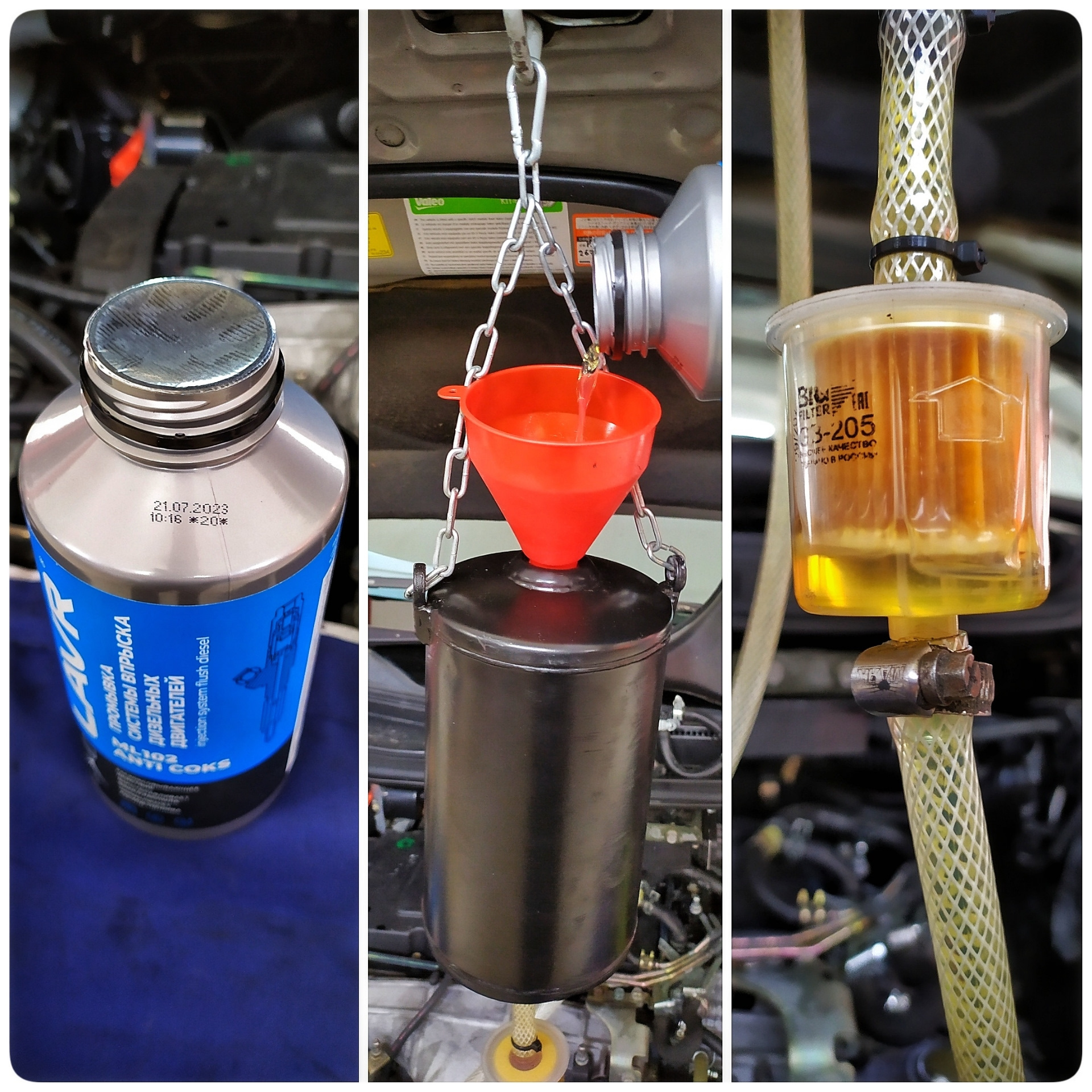 Я моем случае я делал несколько перерывов в работе двигателя для остывания промывочного состава, так как температура его неумолимо росла, а мы все знаем, что бошевская топливная система не любит топливо температура которого выше 40°С
