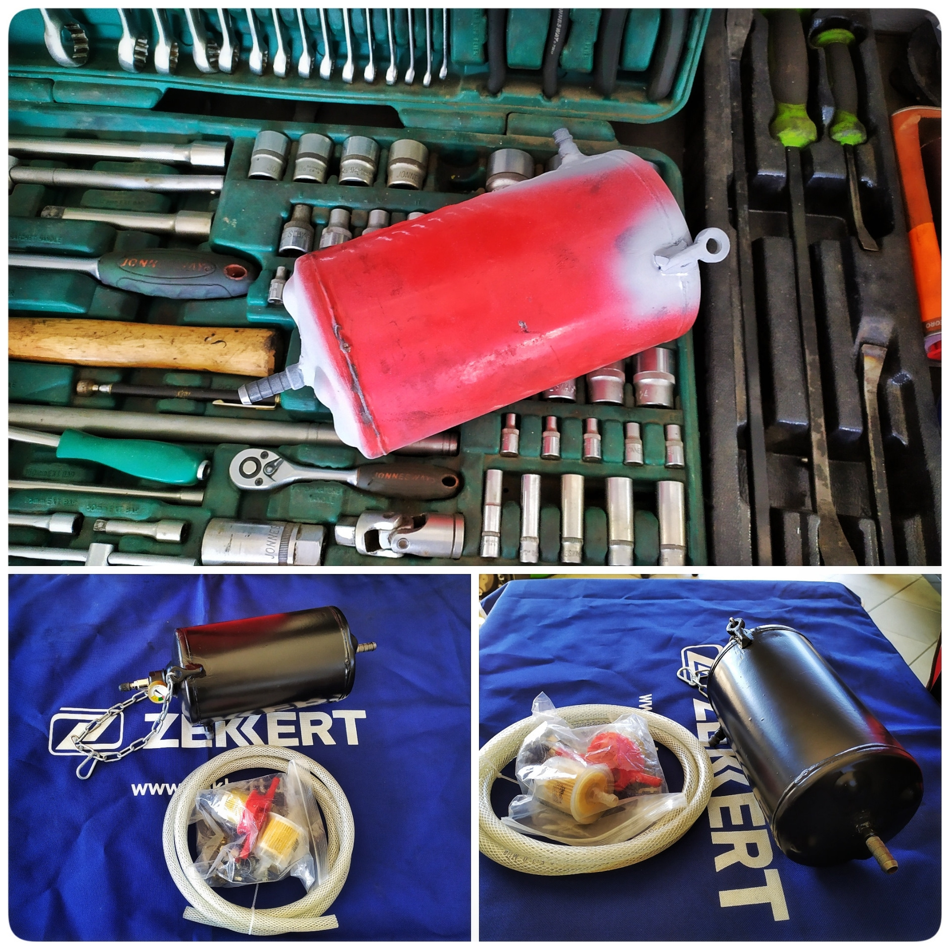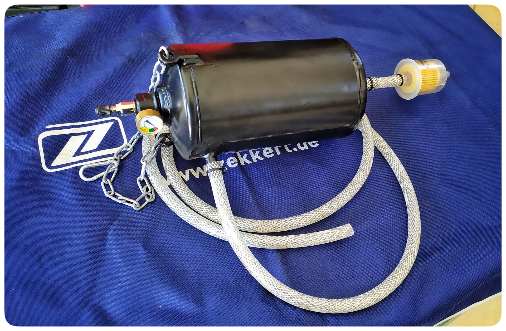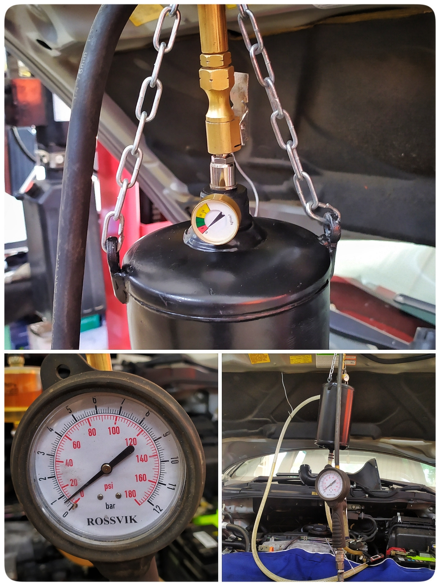 У всех автомобилей по разному, но мой насос подкачки из бака номинально даёт 0,5 АТМ, по этому, для чистоты эксперимента, нужно компенсировать это давление с помощью компрессора (это как раз то, чего я не мог сделать при использовании кустарного метода):